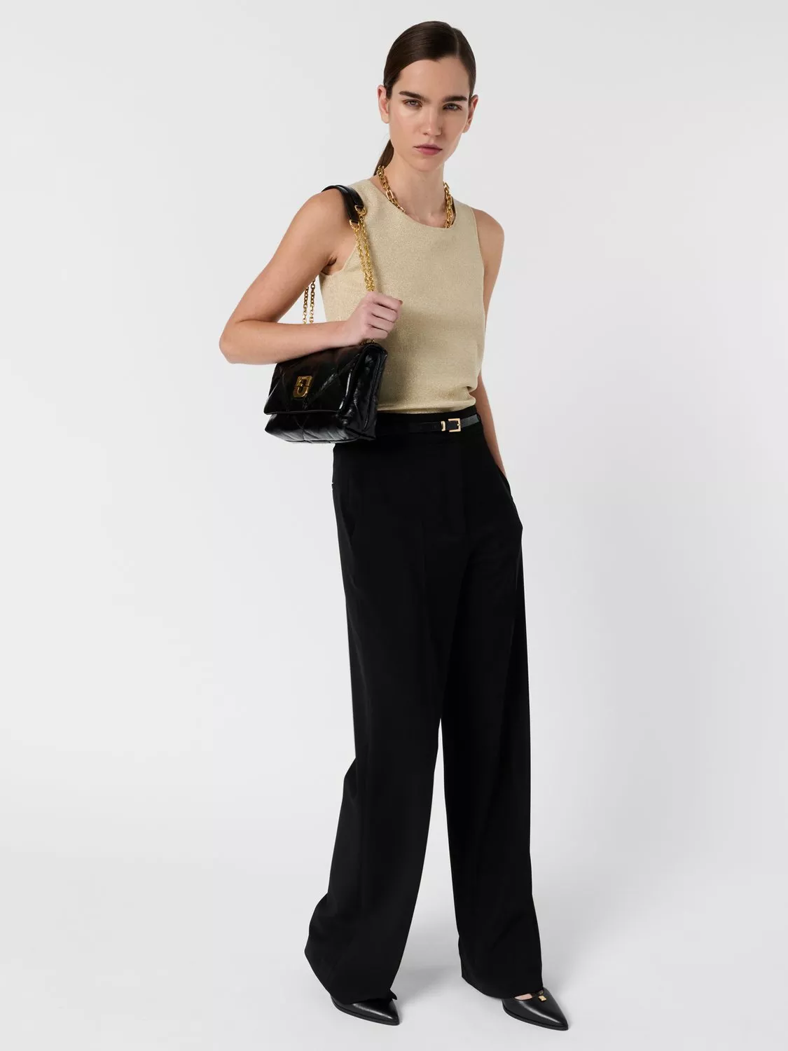 A fine-knit, sleeveless jumper from Gerard Darel. Metallic threads add sparkle while the round neck keeps things classic, perfect for layering or standing out on its own.