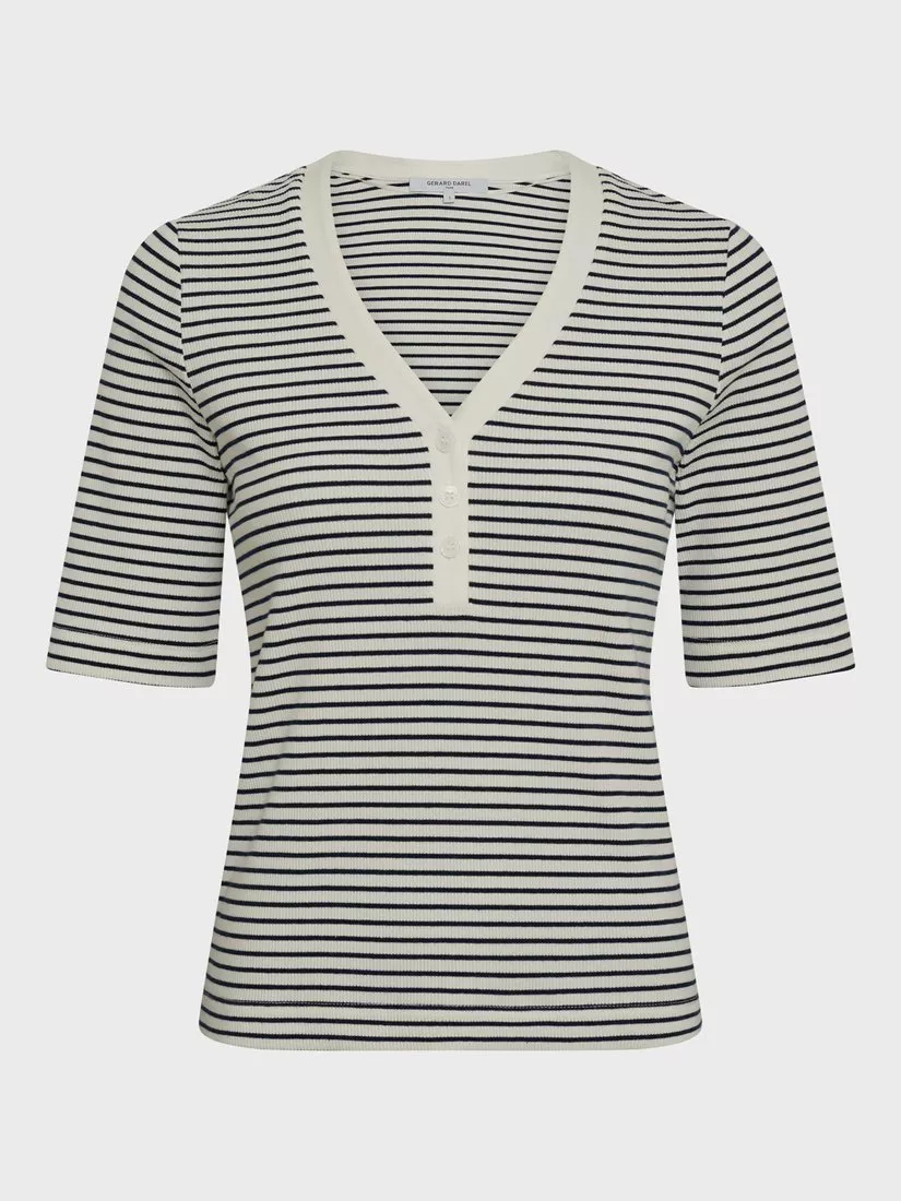 A striped T-shirt from Gerard Darel, made from a soft cotton blend with a contrast V-neck and short sleeves.