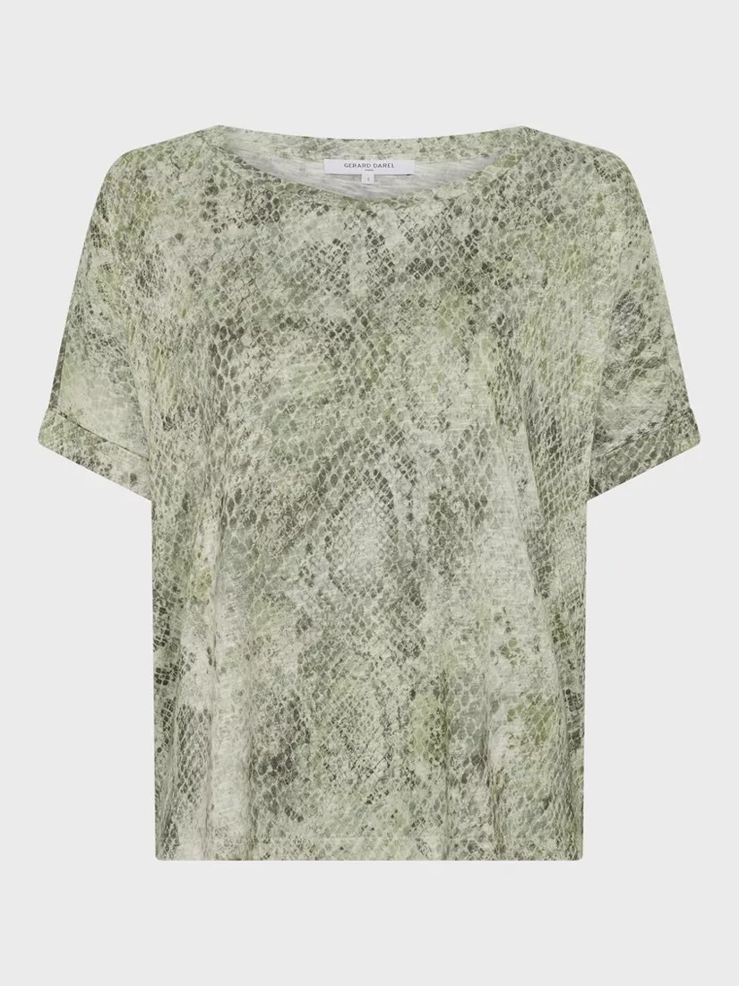 A lightweight, cotton-blend top in a daring all-over snake print.