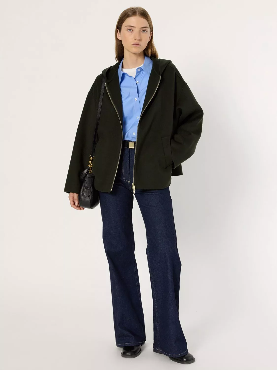 This wool bomber jacket keeps you comfortable and ready for anything, thanks to its clever zip and hood details. A playful piece that adds style and substance to your day, offering warmth and a distinctive look you can make your own.