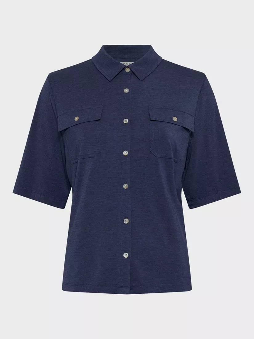 A blouse by Gerard Darel, made from a soft viscose blend. With a collar neck and short sleeves, it comes in a mix-and-match ready plain colour. Effortless style for daily dressing.