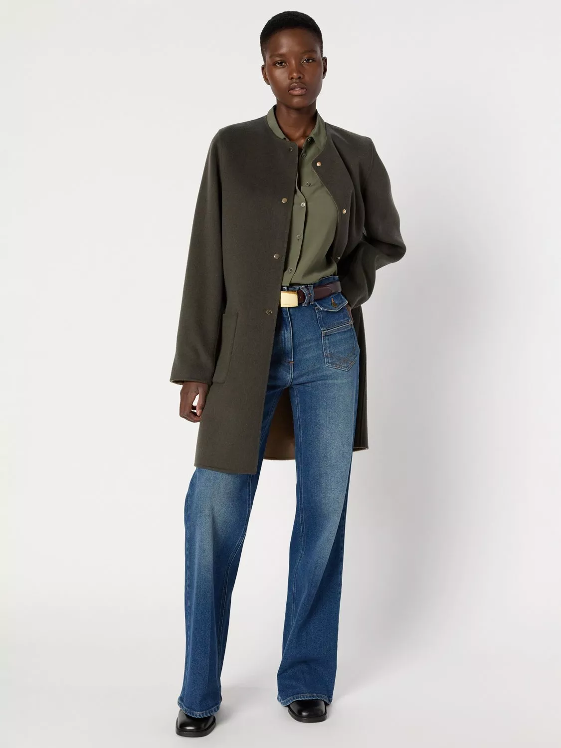 Gerard Darel's longline overcoat is expertly crafted from pure wool. With its round neck, long sleeves and refined silhouette, it offers versatile warmth and comfort.