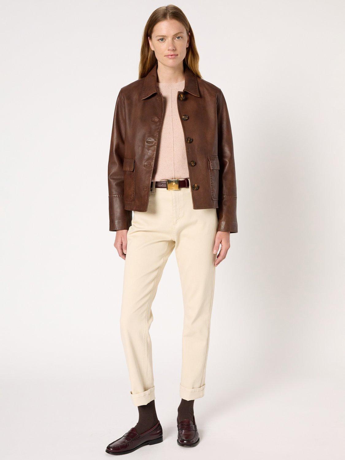 Gerard Darel's leather jacket – soft lamb leather and timeless tailoring offer comfort and versatility for every outing, making it a trusted piece for any occasion.