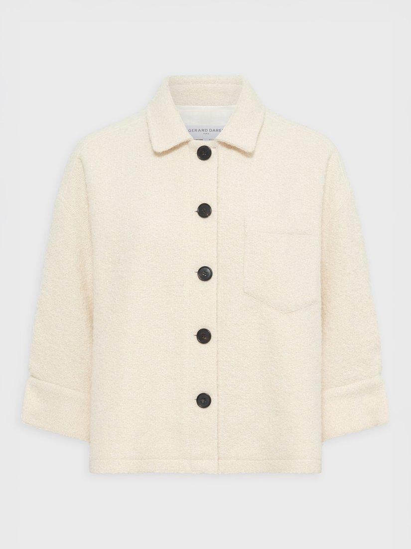 Wrap up in effortless sophistication with this Gerard Darel knitted jacket. The soft wool blend and classic collar keep you comfortable on brisk days, while its tailored silhouette and three-quarter length sleeves add a fresh edge to everyday layering.