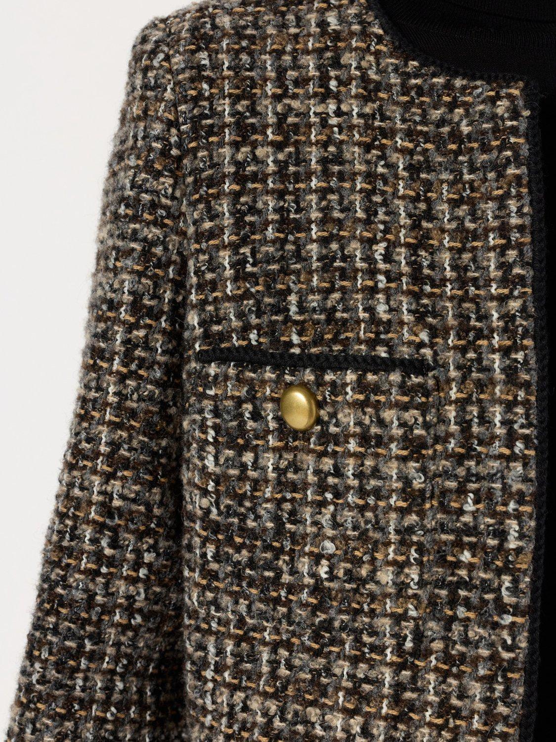 The Gerard Darel wool blend jacket brings smart structure to any ensemble, offering comfort and style for everyday plans or spontaneous adventures. Its round neck and long sleeves frame your look perfectly, while the tailored fit ensures lasting appeal from office hours to evening escapes.