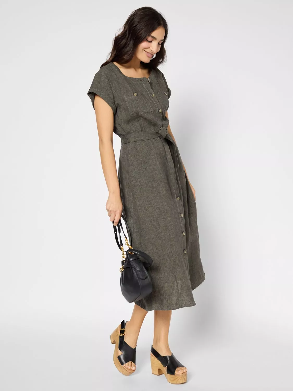 In an easy to wear A-line shape, this mid-length dress from Gerard Darel is light and natural thanks to its pure linen fabrication. Keeping things simple with a round neckline and short sleeves, this style is kept trend-free so that it'll sit in your closet for years to come.