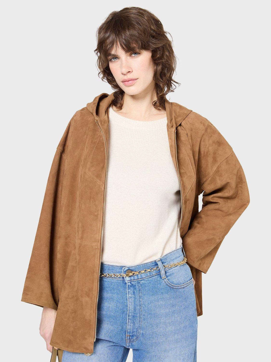 Taking you through the seasons in style and only improving with age, this buy-now wear-forever piece by Gerard Darel is made in pure suede with a hooded neckline and zip front.