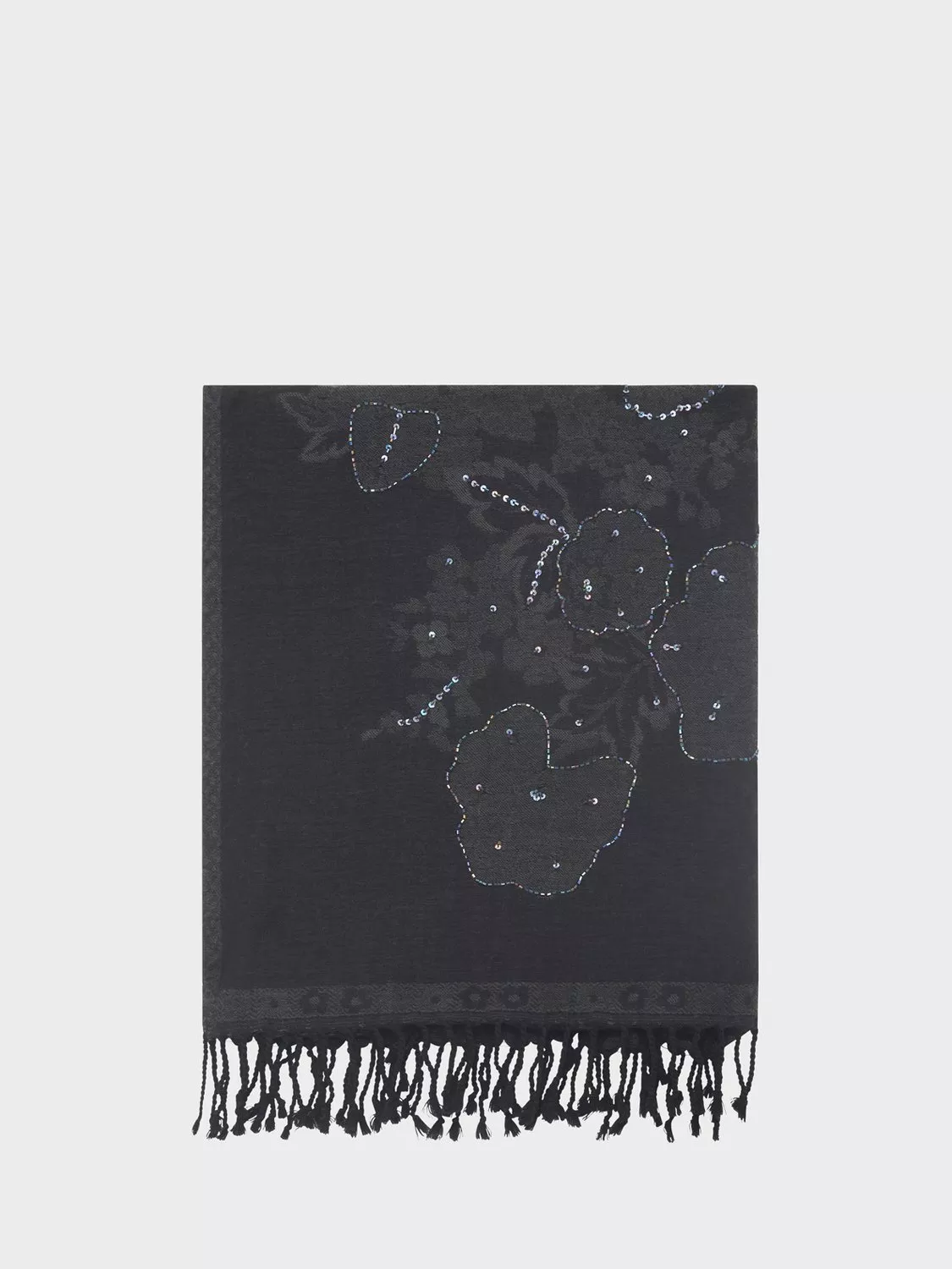 Gerard Darel's wool scarf, designed for ease and flair. Its floral pattern adds a spark to everyday moments, bringing warmth and character with every wear.