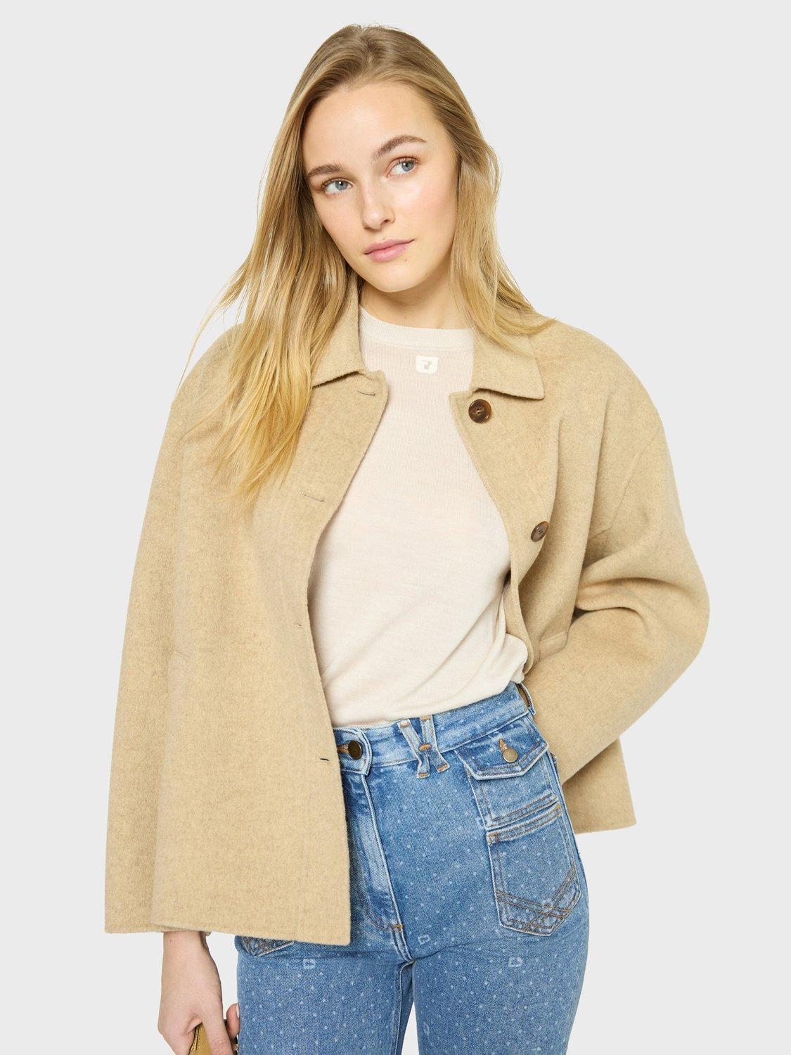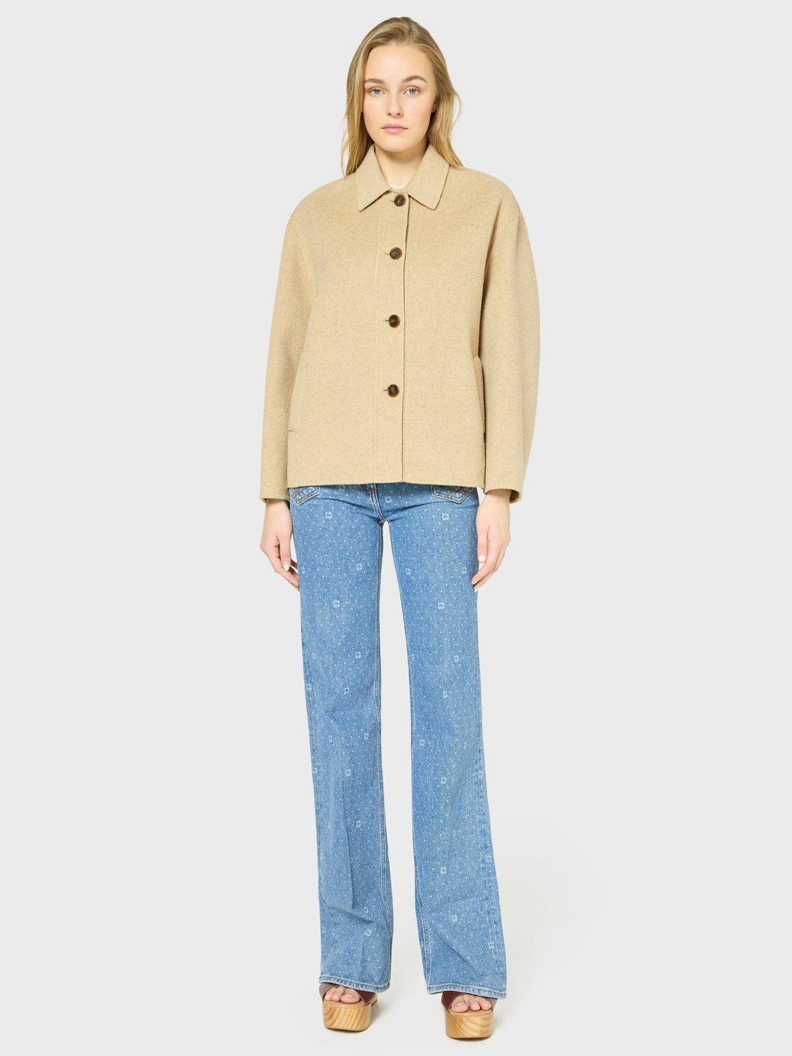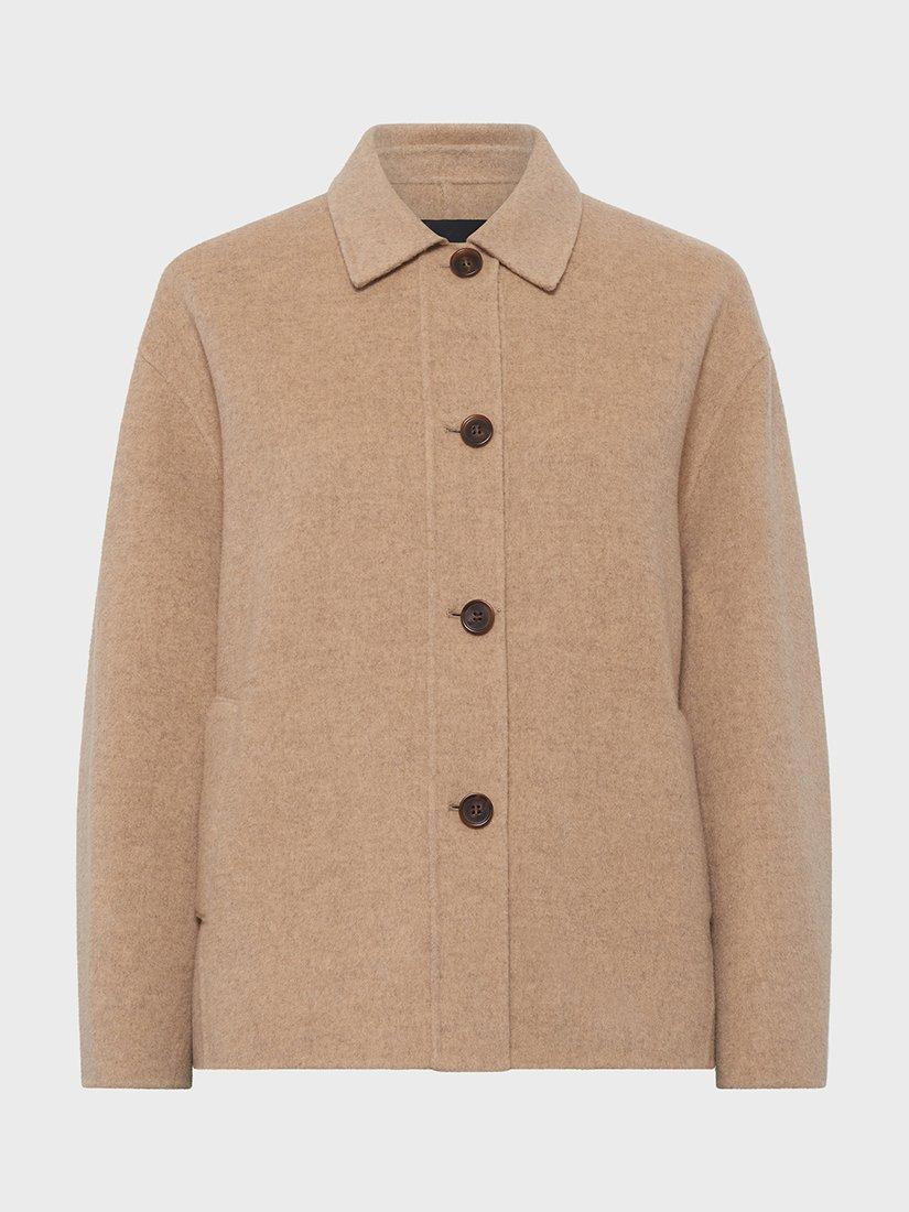 The epitome of winter styling, this boxy cut jacket by Gerard Darel sits at the hips for practical coverage. With a collar and open top patch pockets, it is made from a luxury wool blend with a button front.