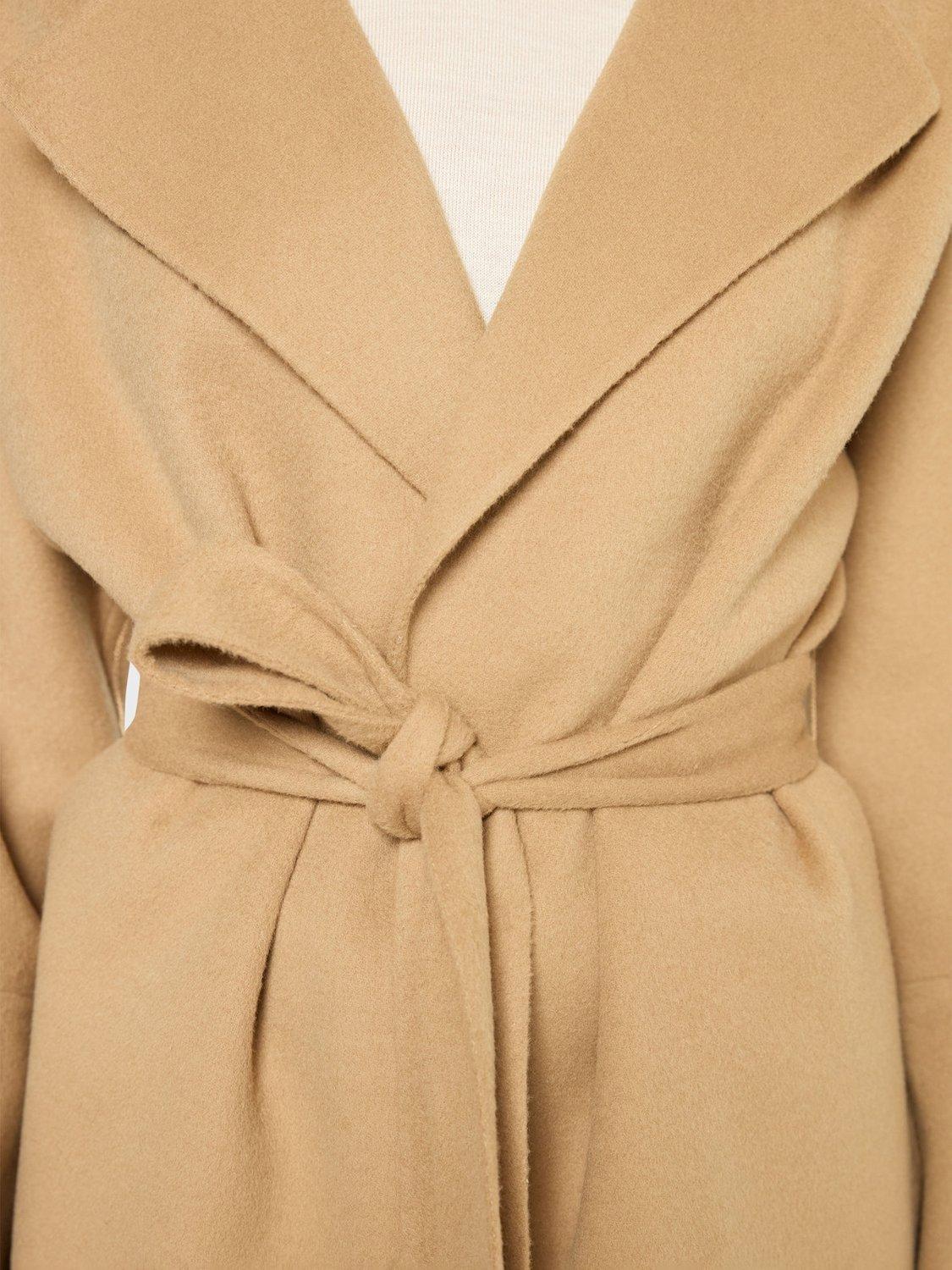 With an oversized collar and wide sleeves, it is made from pure wool and belted for ultimate warmth.