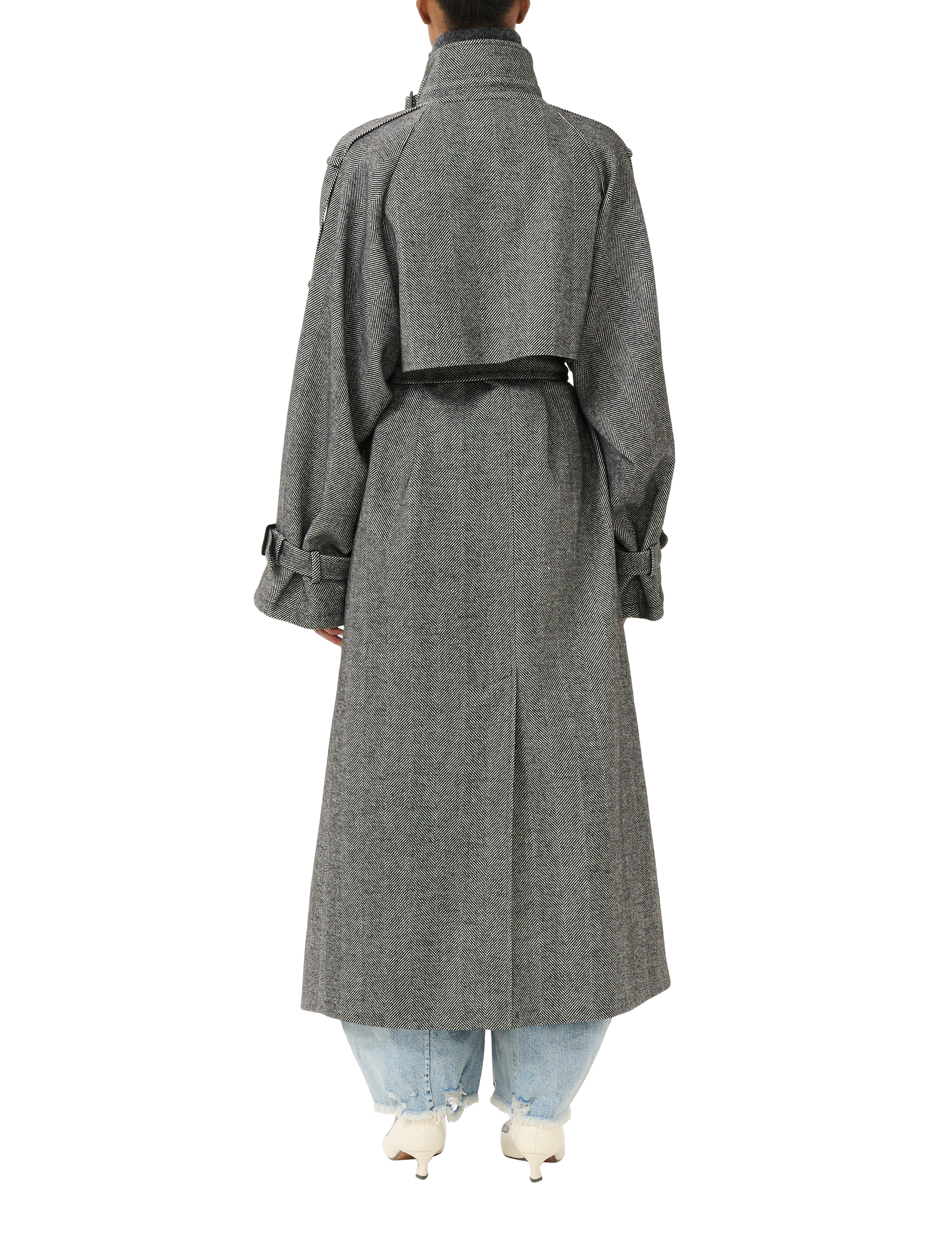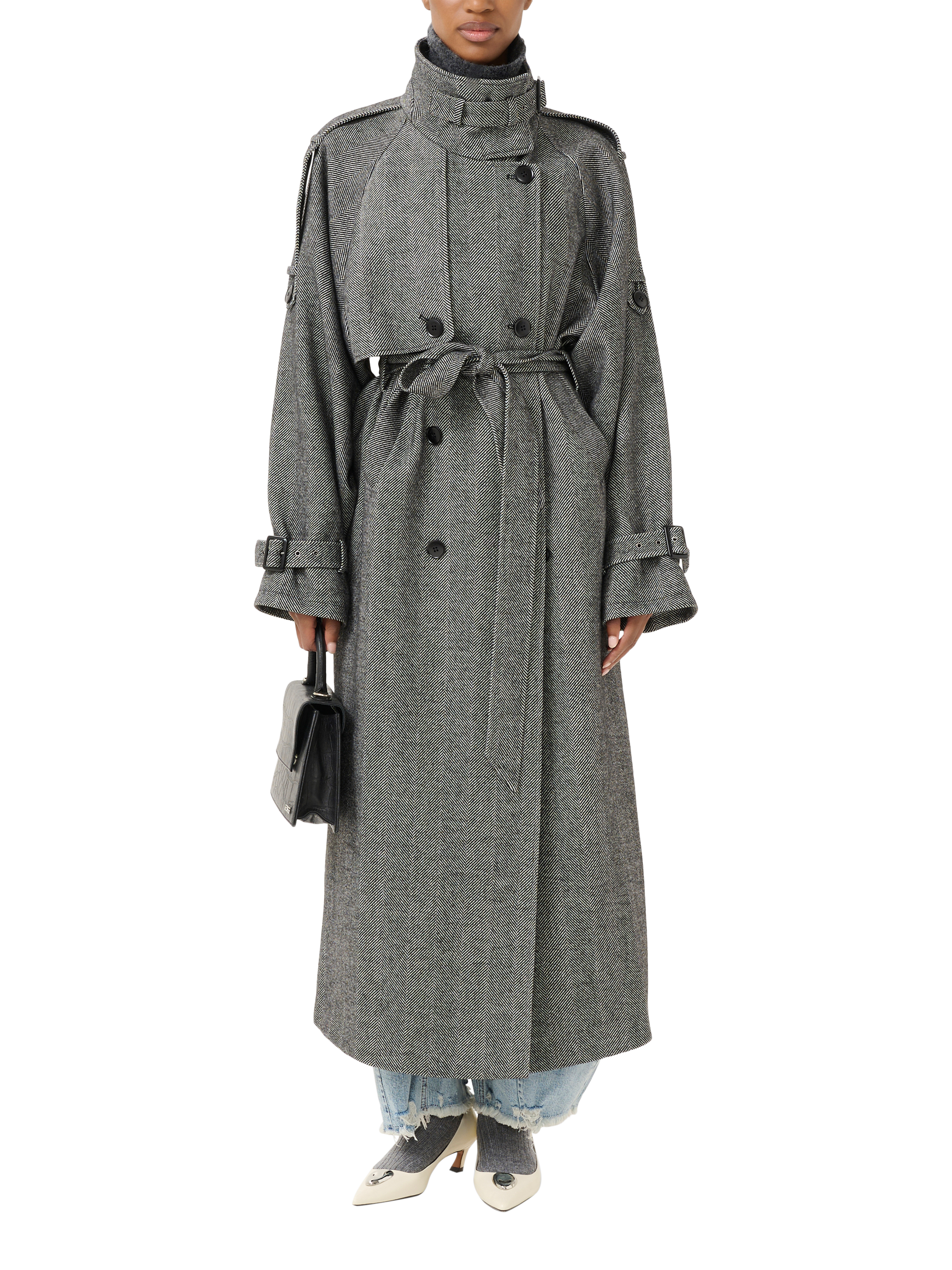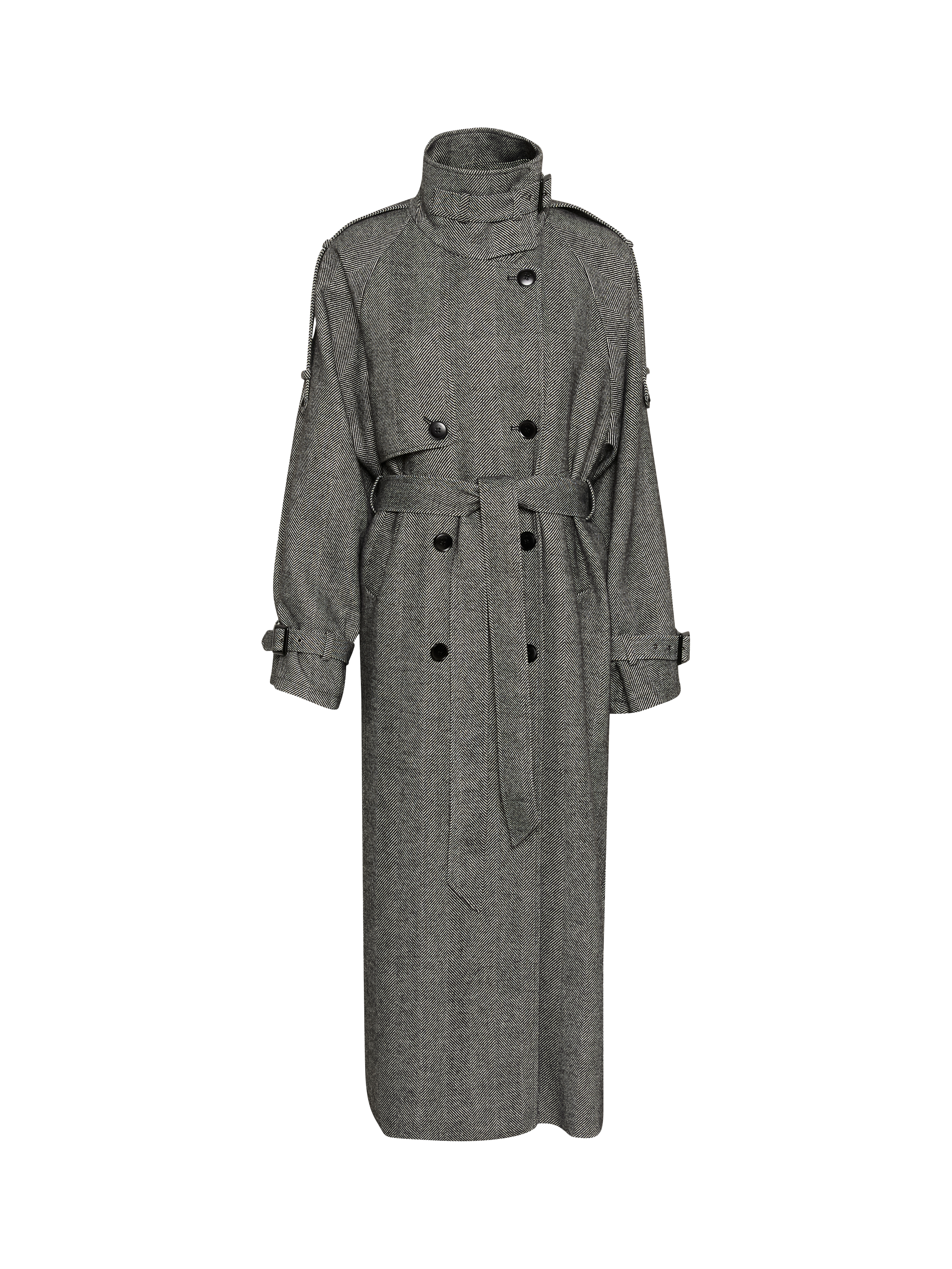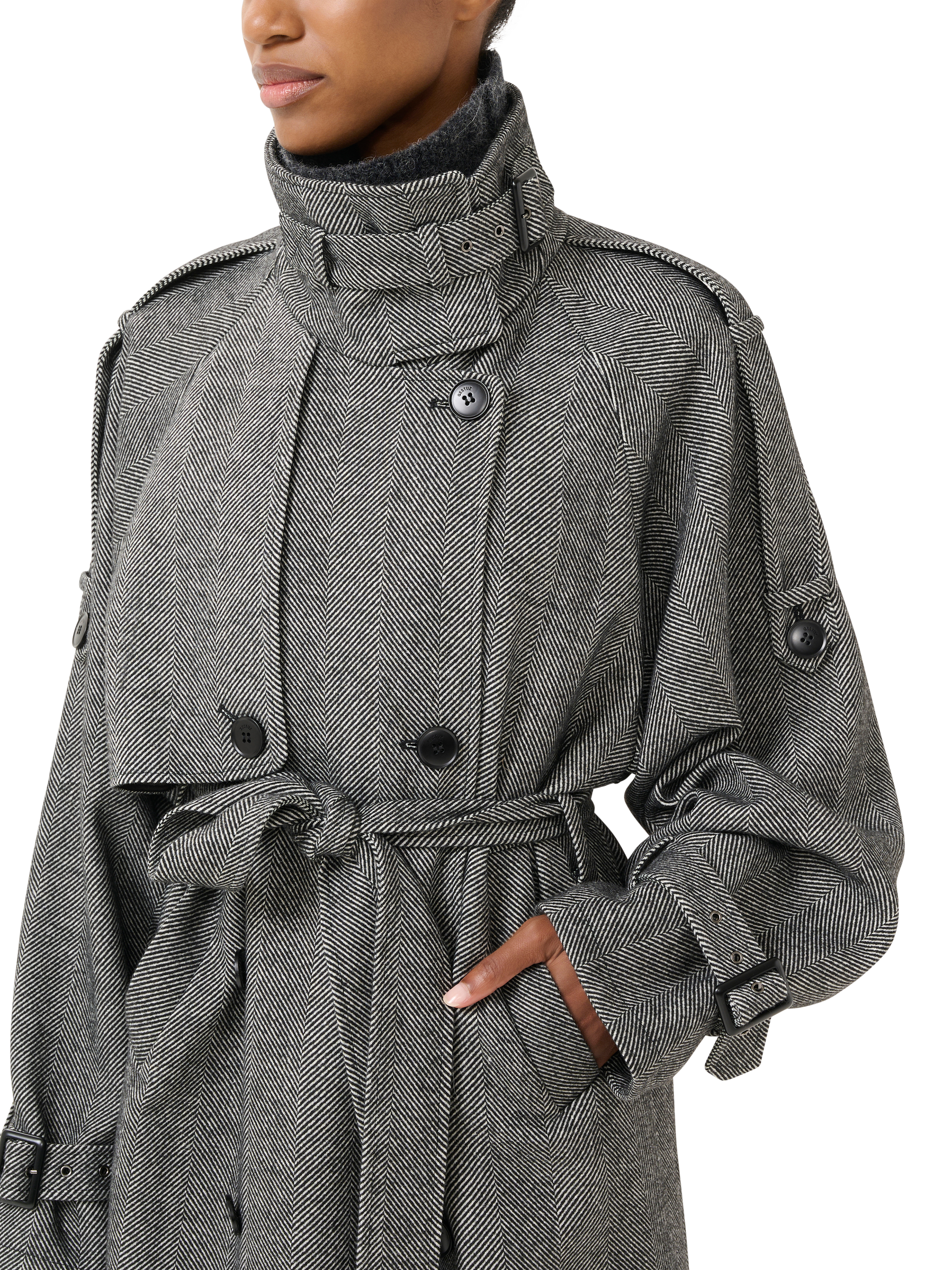 Snug with its high neckline and printed in timeless herringbone checks, its classic design meets a modern wool fabric blend for ultimate comfort.