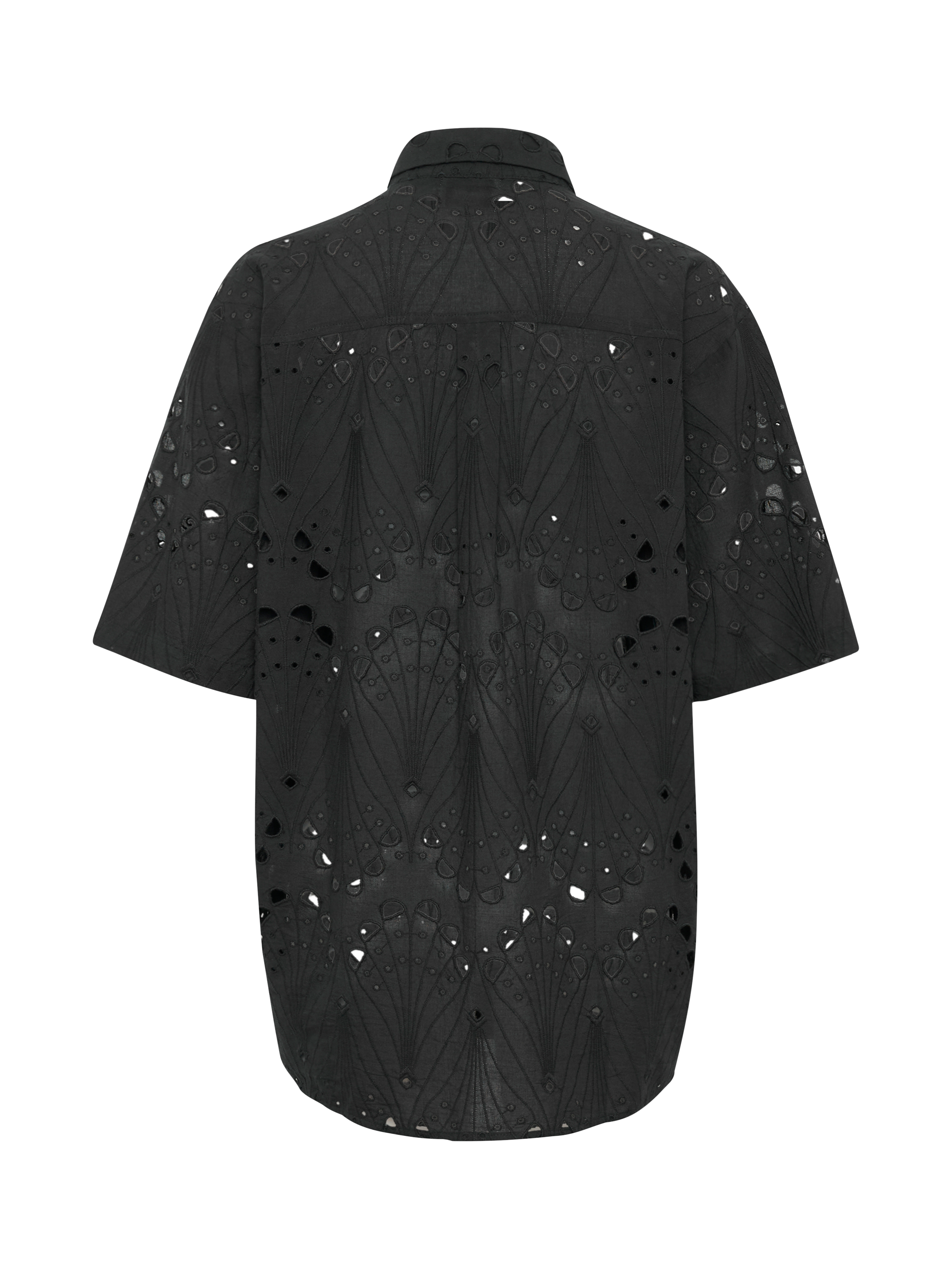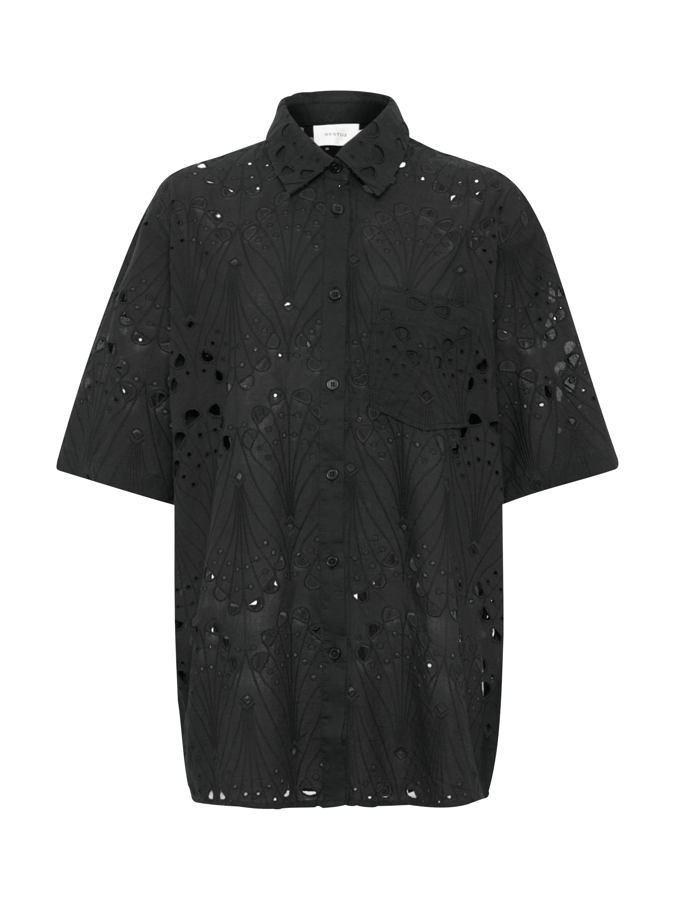 Cut to a longline, this shirt by Gestuz is made from 100% cotton with all-over cut out embroidery. Structured with a collar and short sleeves, it's perfect for both casual outings and stylish office wear.