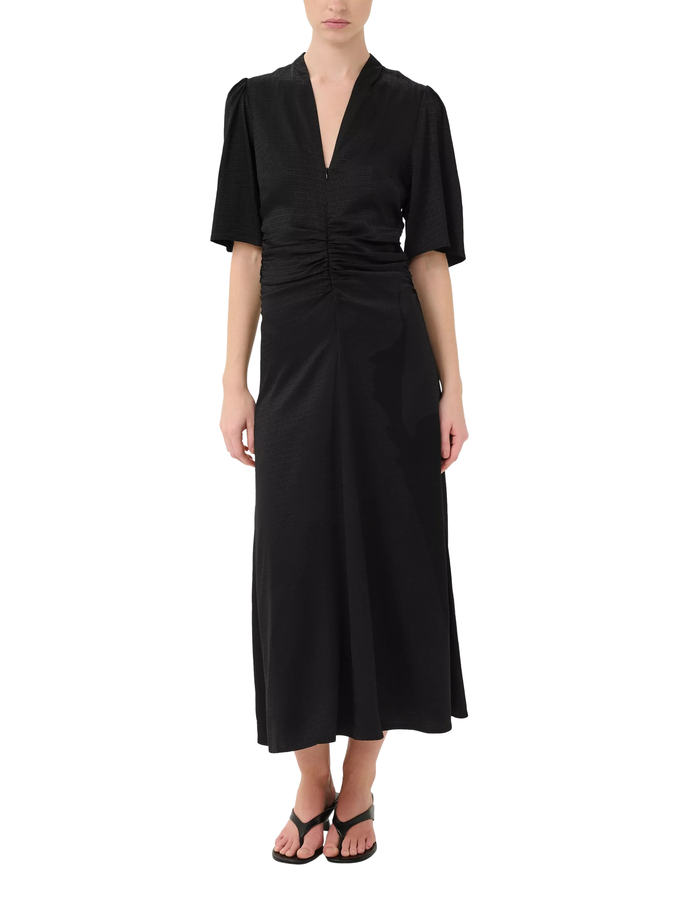 Designed in a smart A-line shape, this mid-length dress from Gestuz is crafted from an airy viscose blend with a zip front. With a plunge v-neckline and elbow length sleeves, this style features a ruched waist.