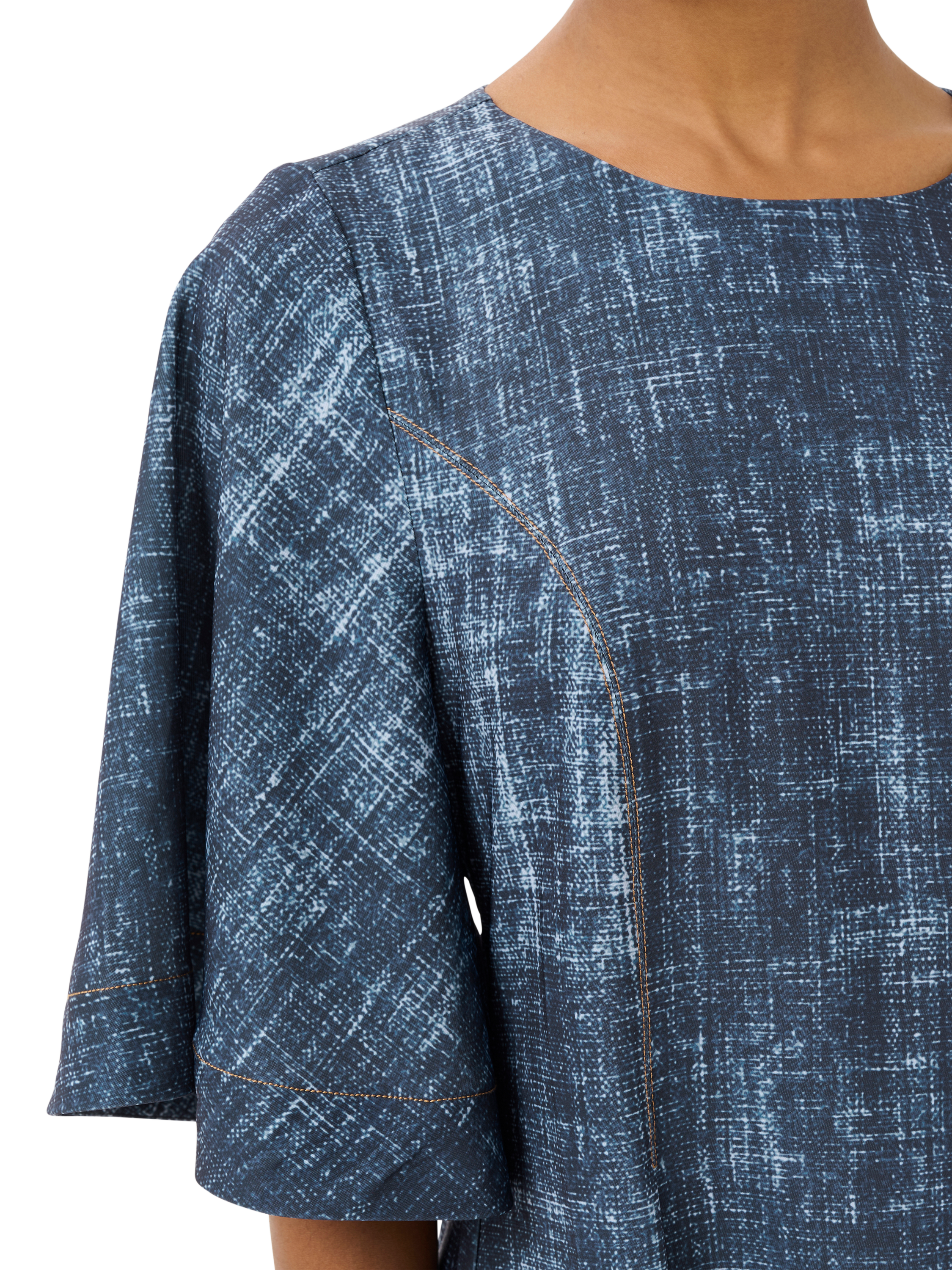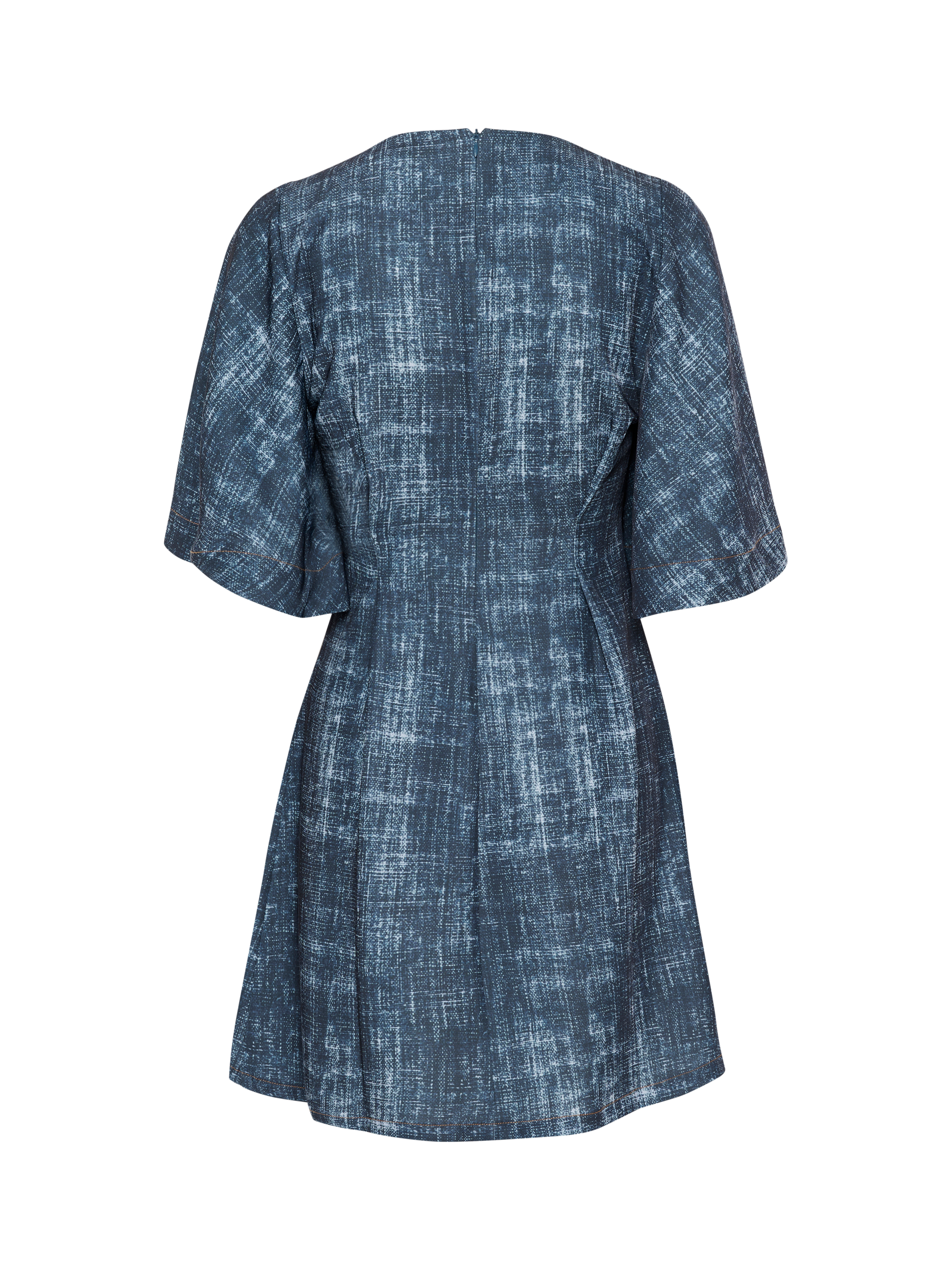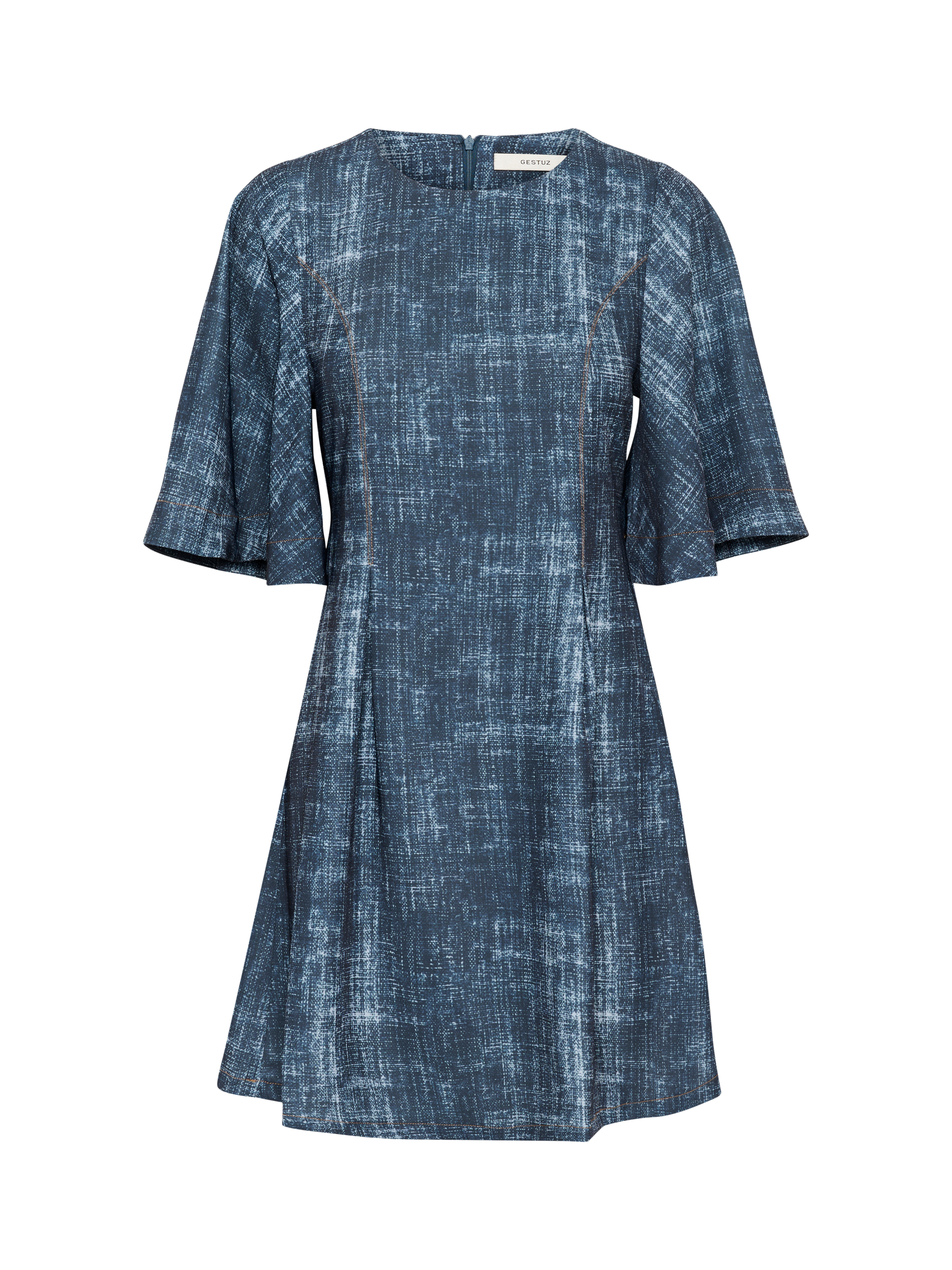 In a fit-and-flare shape that accentuates the waist, this mini dress from Gestuz is crafted from a denim structured blend of fabrics. Defined with a conventional round neckline and short wide floaty sleeves, this style is minimally detailed for endless wearability.