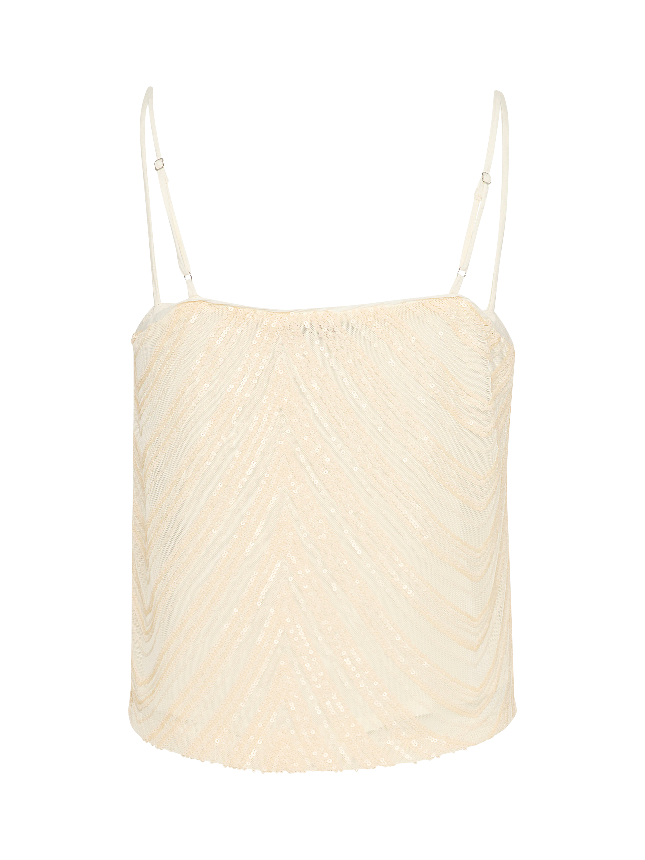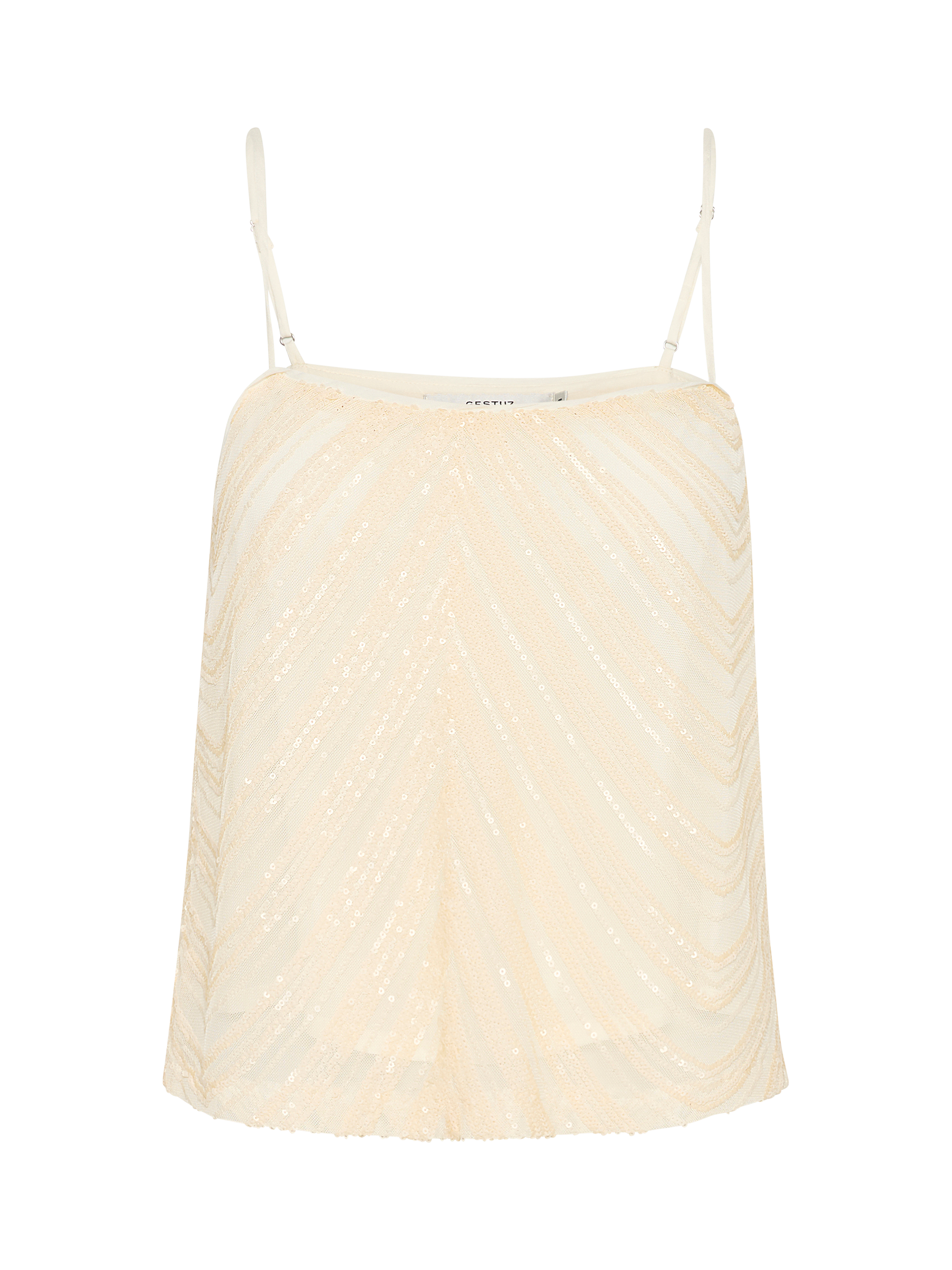 Embellished all-over for a sparkling finish, this cami by Gestuz suspends from thin spaghetti straps.