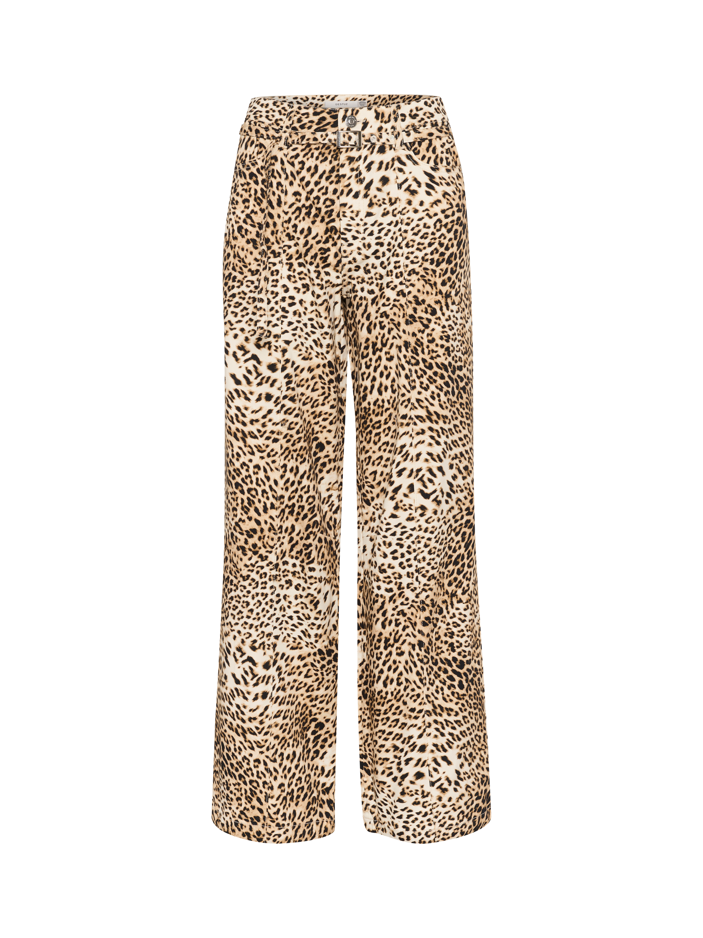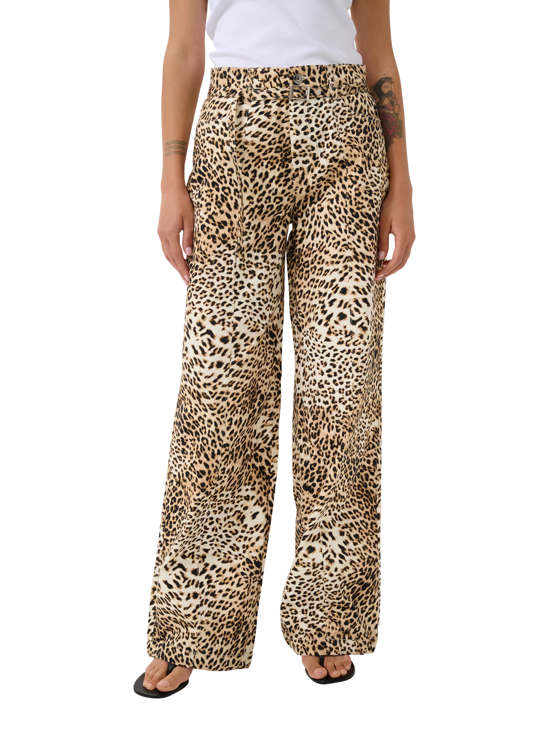 Unleash your wild side with these high-waisted, leopard print trousers. Perfect for a bold, fashion-forward statement.
