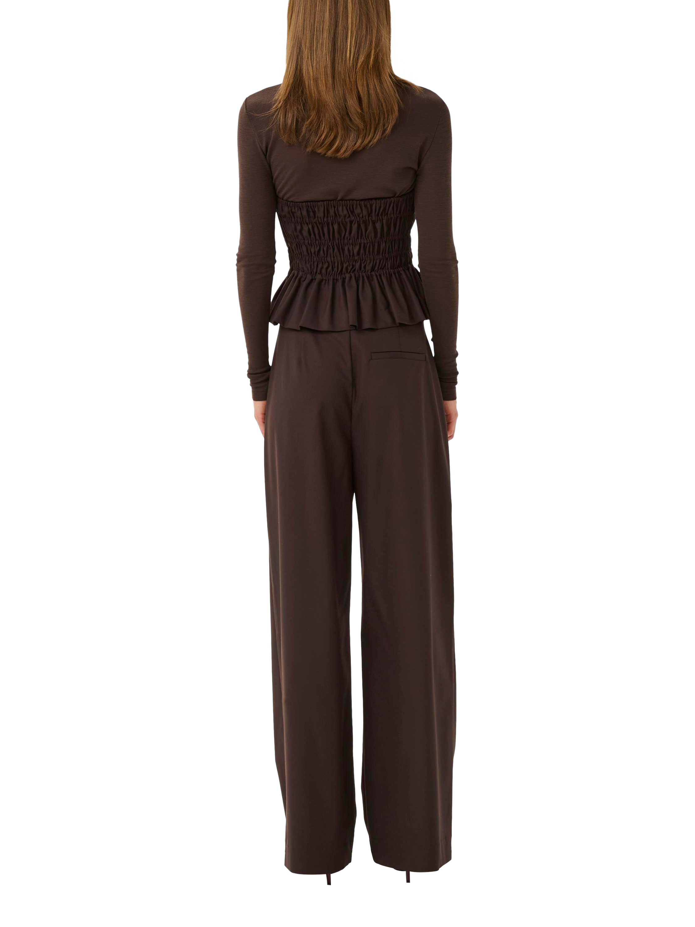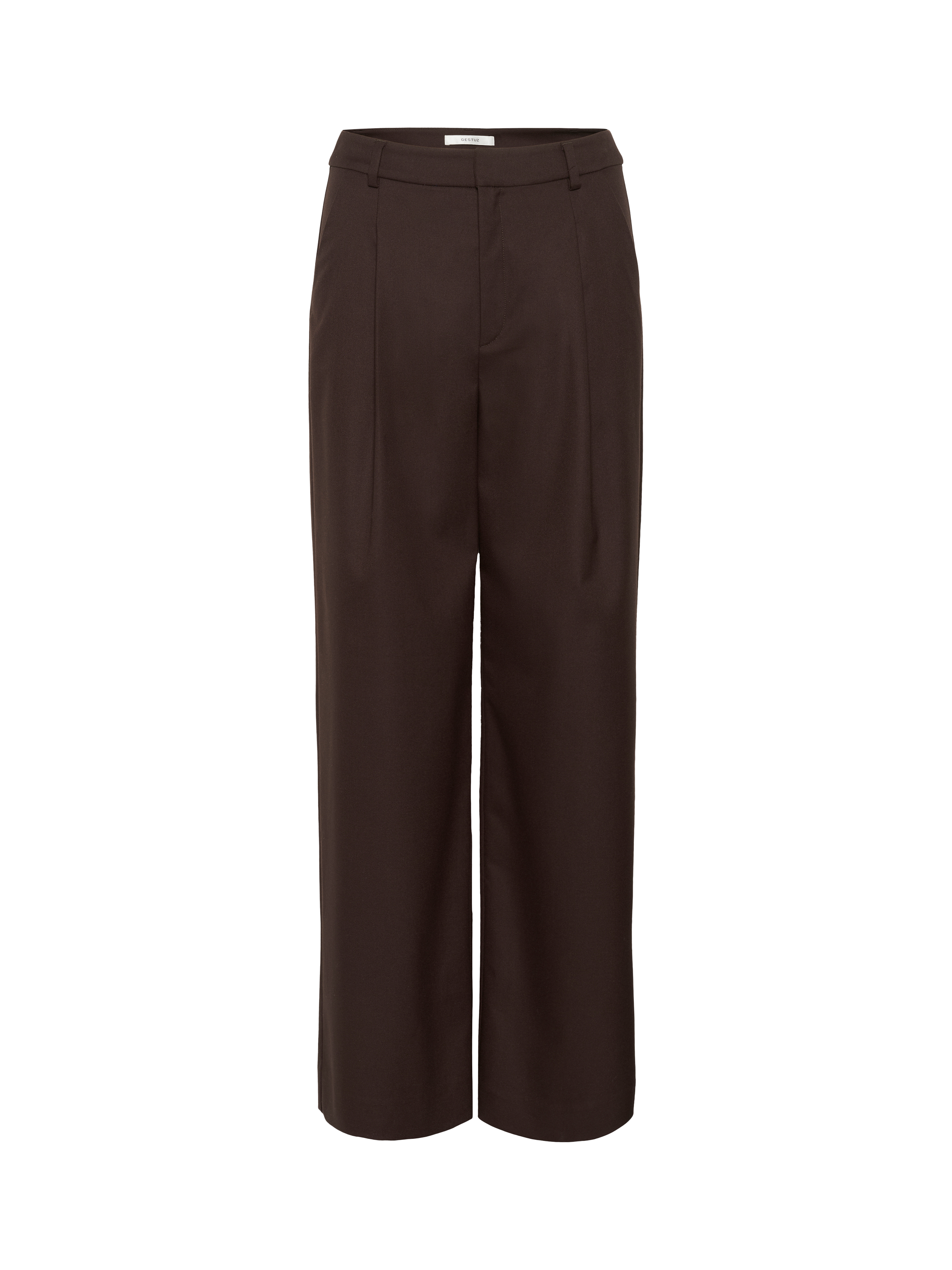 A pair of perfectly oversized, perfectly nonchalant wide-leg trousers by Gestuz. They sit mid rise and fall to a regular length.