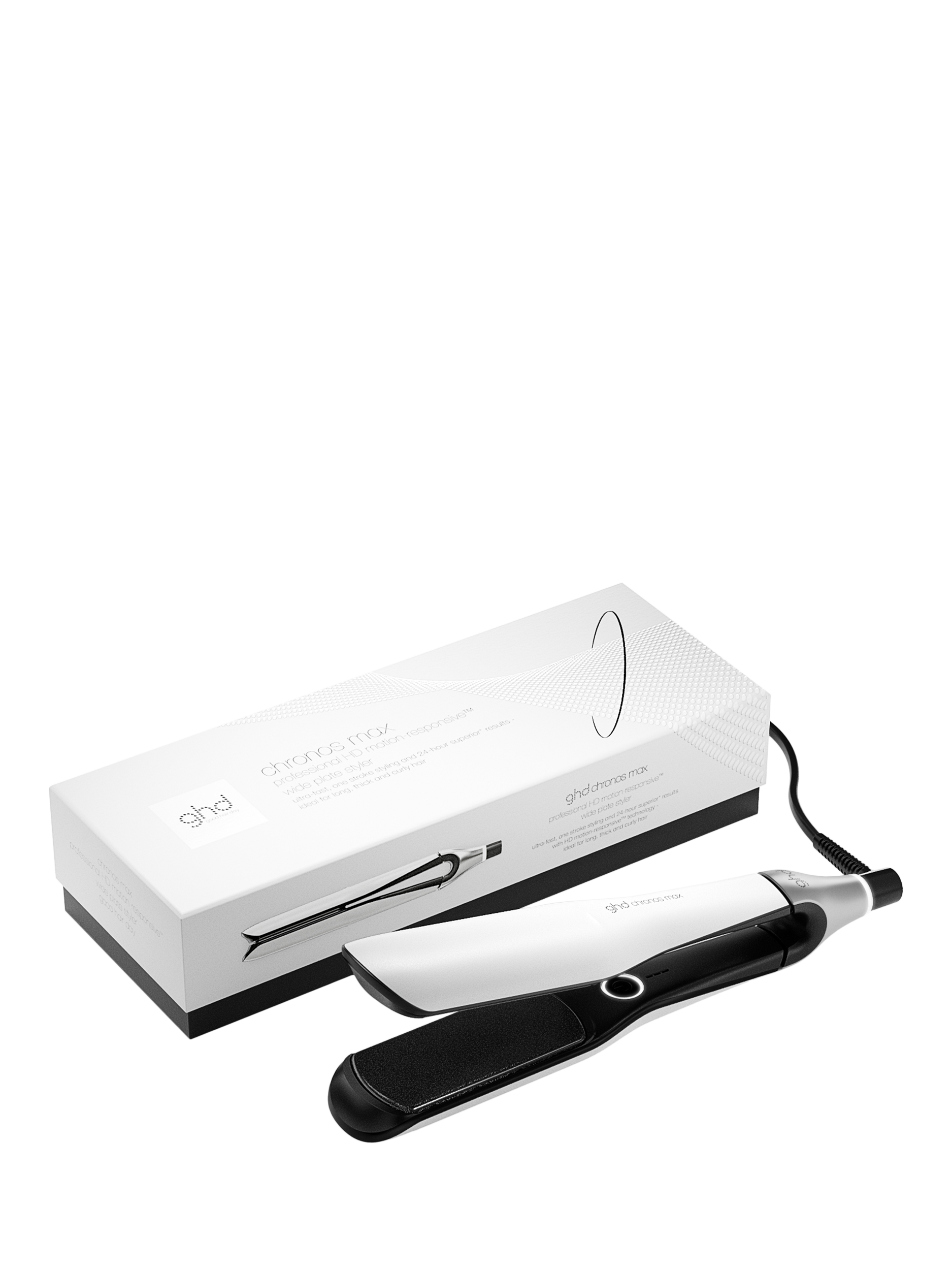 ghd’s cutting-edge HD motion-responsiveTM technology is now available in wide plate styling to transform long, thick and curly hair in one stroke for results that last 24hrs₂, With no extreme heat damage₅.