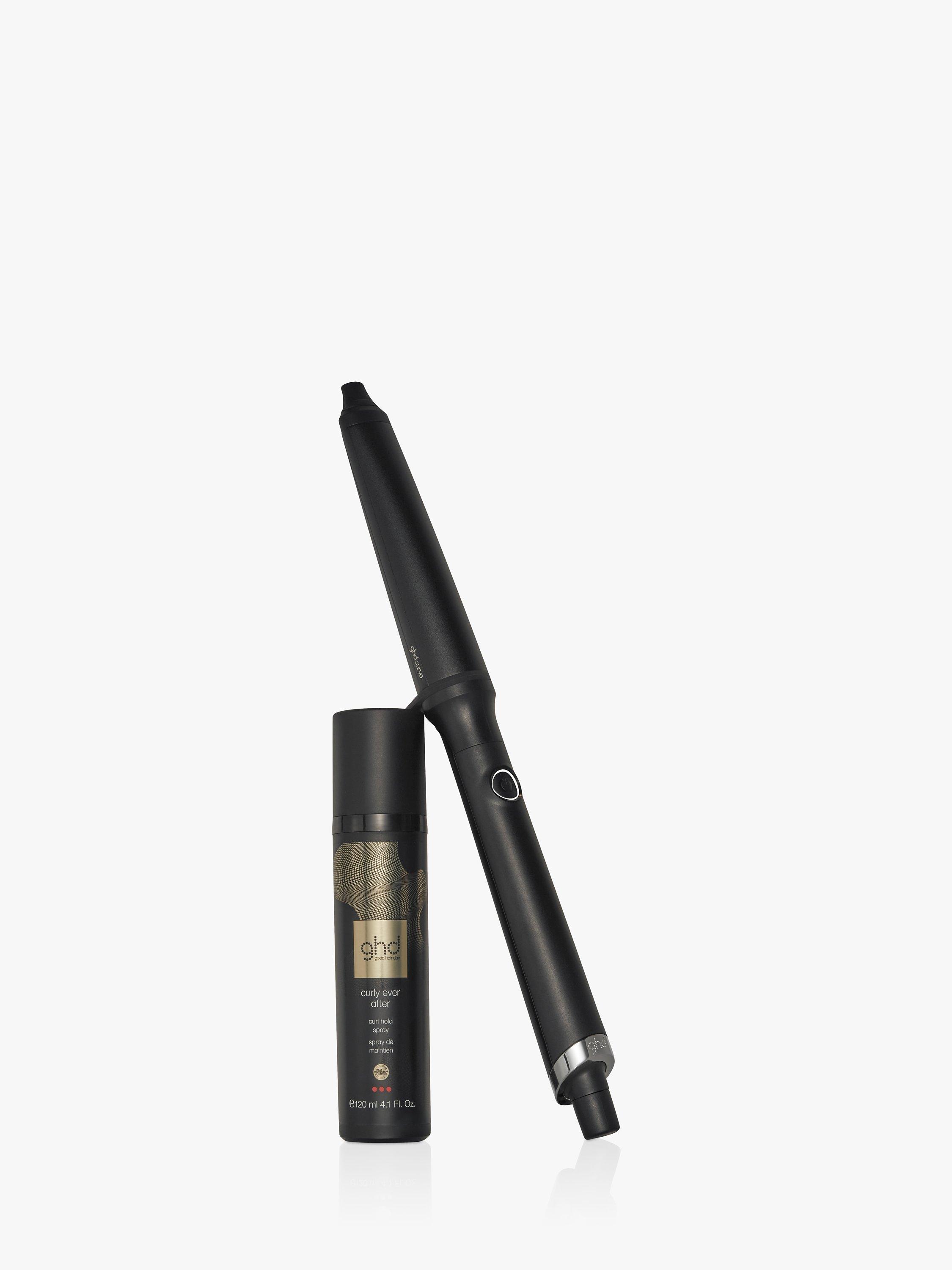 Create long-lasting curls with your styler, curling wand or tongs, with ghd curly ever after. A lightweight spray with invisible feel delivering more defined curls, 8/10 agree*, and harnessing the ghd heat protection system, ghd curly ever after is a curly styling essential. Incorporating a two-fold action of protection polymers and conditioning agents, the ghd heat protection system forms an invisible barrier over the surface of the hair to protect against heat damage. Working in harmony with ghd styling tools, ghd curly ever after delivers defined, long-lasting curls with natural shine and finish, 8/10 agree*. For maximum results, use with the ghd curve range for up to 24 hour hold**.