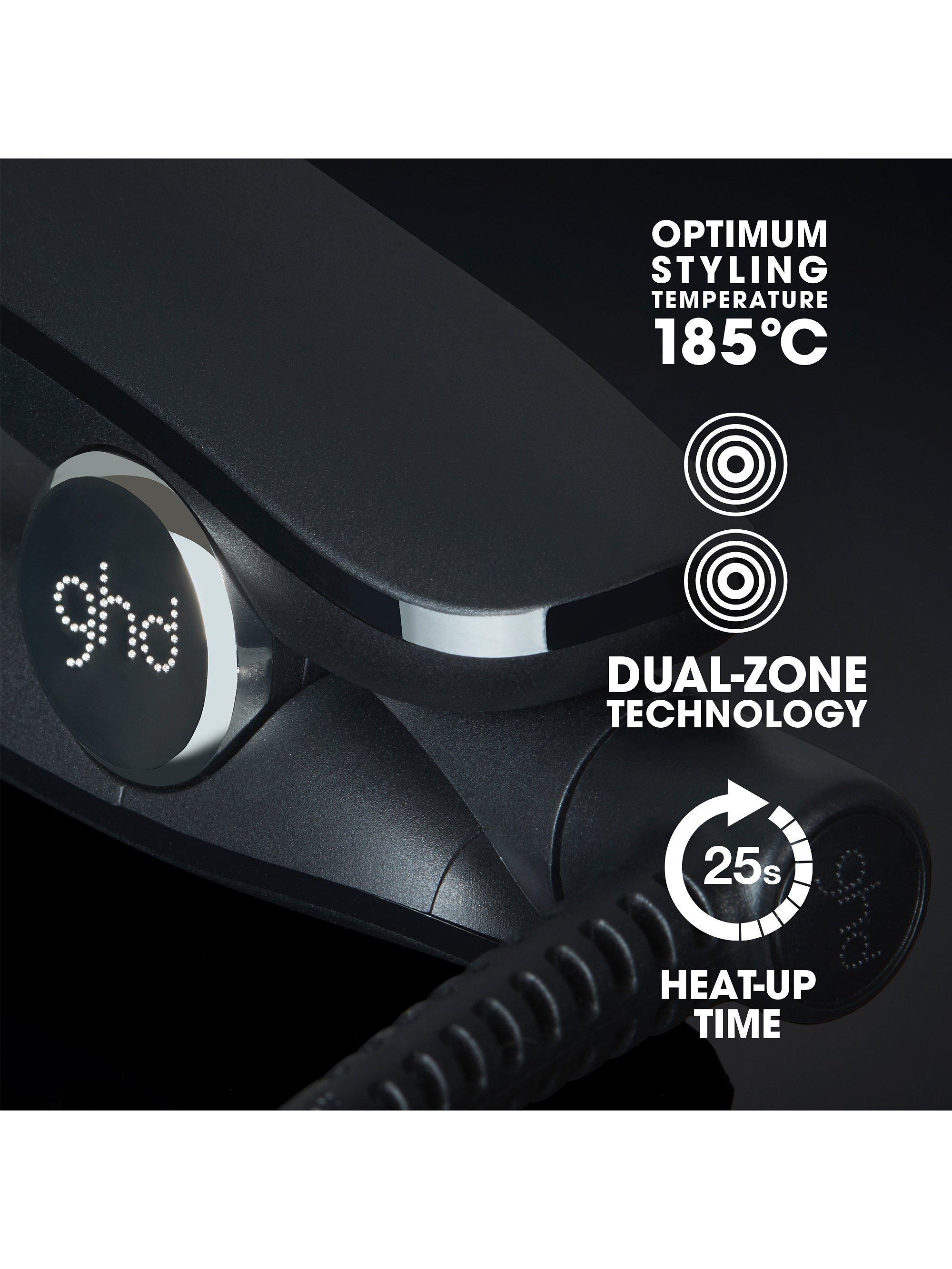 Featuring dual-zone technology for a premium performance, ghd gold® has two heat new generation sensors across each plate, instead of one to control the optimum styling temperature of 185ºC constantly and evenly from root to tip.