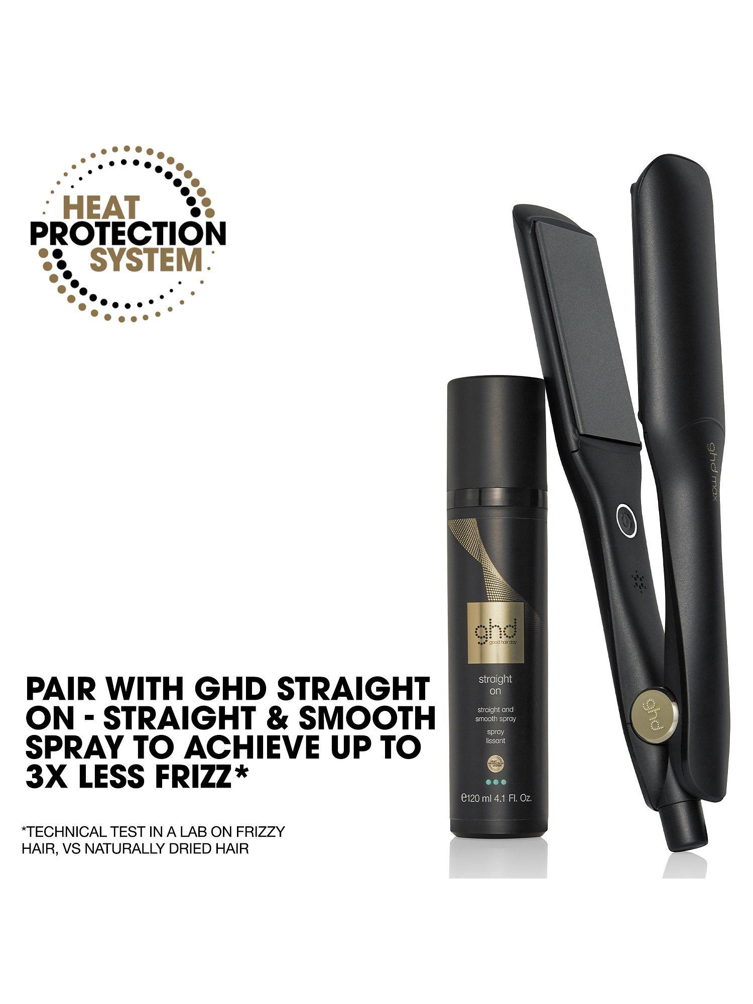 The perfect partner for our ghd straight on - straight & smooth spray. A smooth styling essential, ghd straight on delivers straight hair until the next day, 7/8 agree** and ensuring up to 3x less frizz*****.