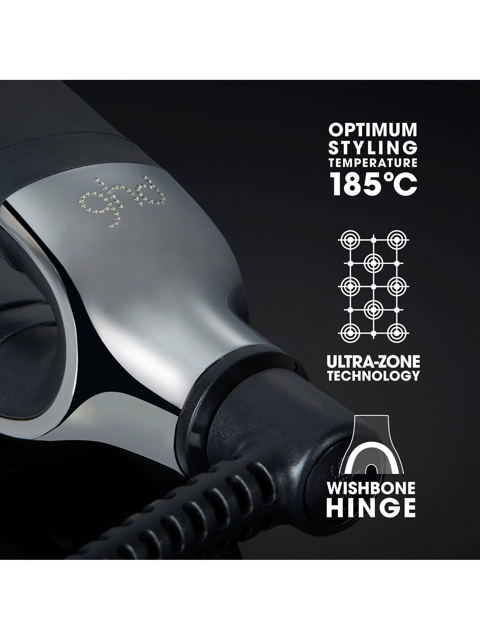 Create ultimate festive styles with our smart styler, ghd platinum+ . Featuring unique Ultra-zone predictive technology for 70% stronger hair* and 75% more shine.** Accompanied by a paddle brush and heat-resistant bag.