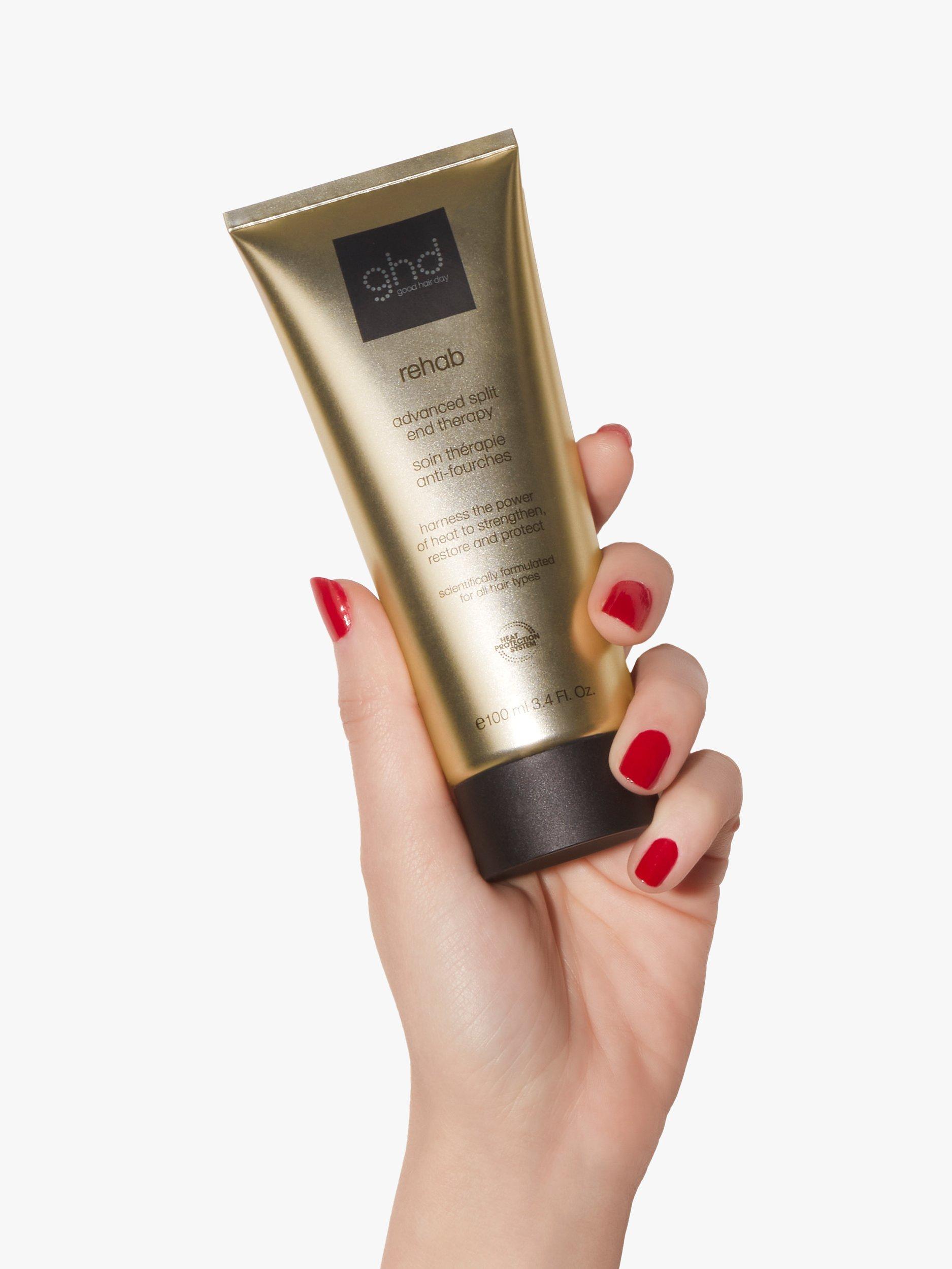 Designed by ghd stylists and engineering heat experts, featuring the unique ghd heat protection system, ghd rehab is activated by the heat of your styling tools to seal split ends for up to 10 washes*, leaving hair nourished and stronger.