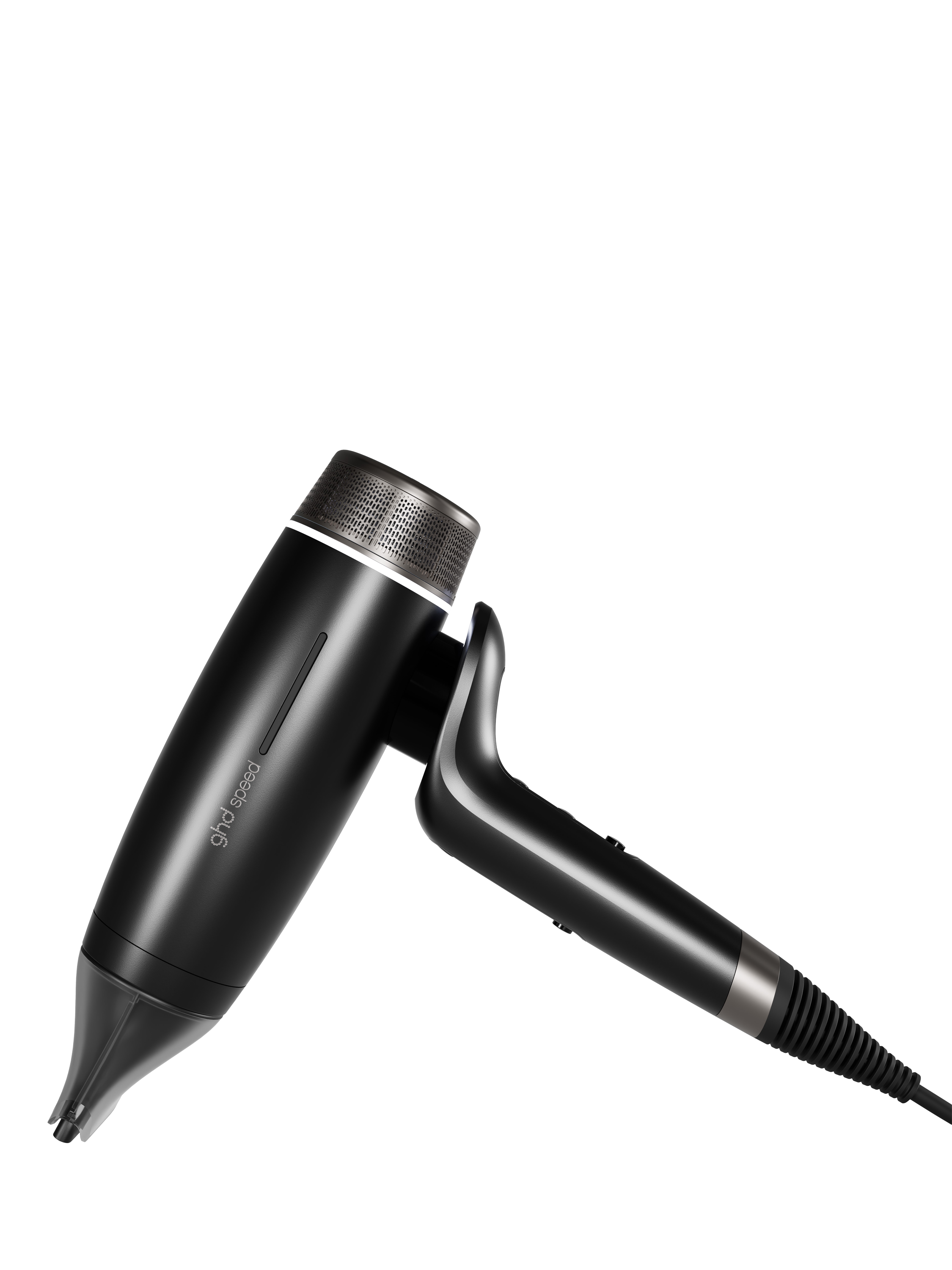 While most brands turn up the heat for faster drying, ghd are keeping it cool. With ghd halo™ dual-airflow technology, a halo of cool air surrounds the central heated airflow, reducing hair temperature by 20°C3 and letting you get closer to the roots than ever before, protecting the scalp for a cooler, gentler way to dry with ultra-fast results. The barrel and attachments stay cool-to-touch, even at the highest heat setting, so you can comfortably hold your ghd Speed your way - by the handle or slim barrel, for effortless styling. This makes it the perfect hair dryer for sleek finishes and boosted volume.