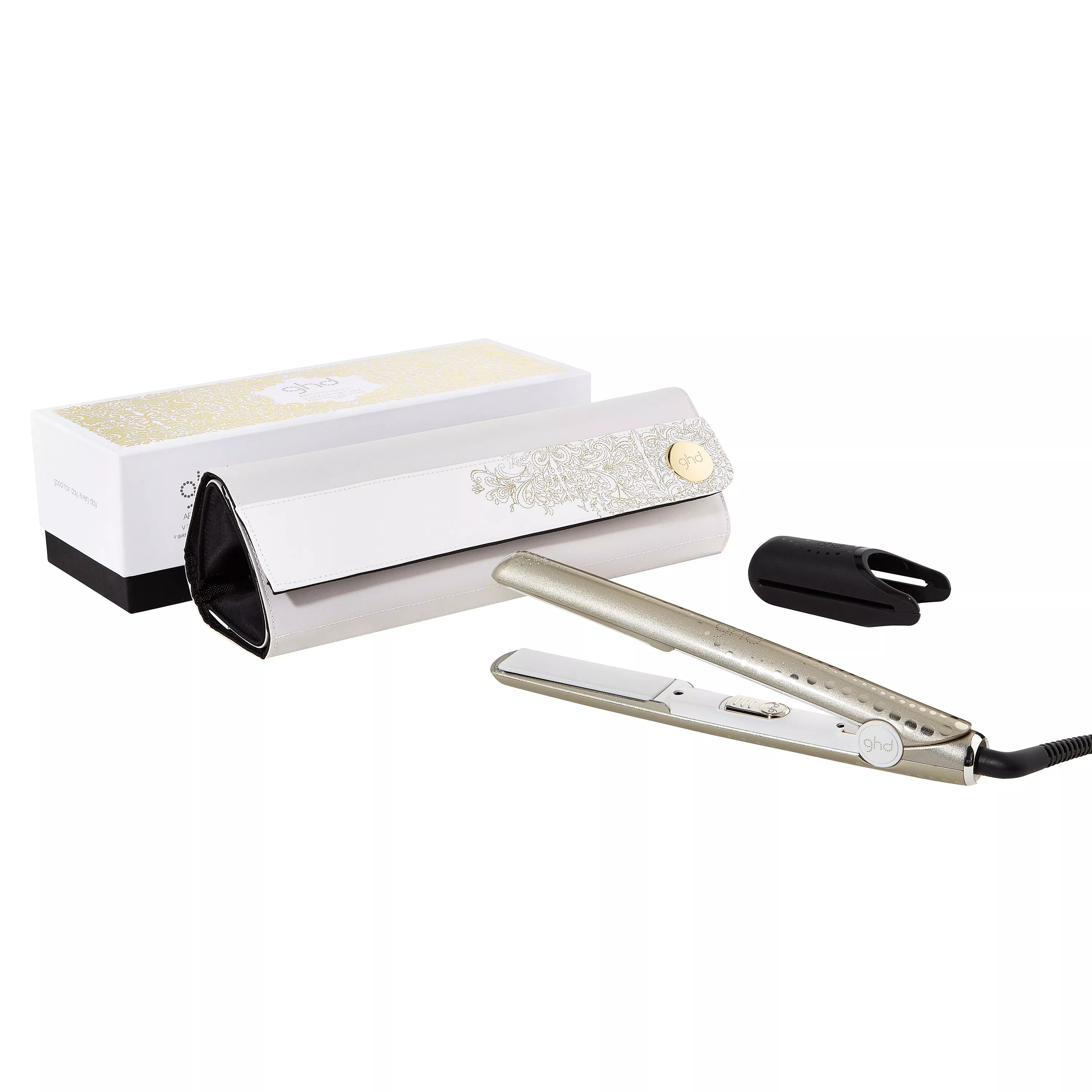 - ghd limited edition V® gold classic styler, co-ordinating heat mat and roll bag, arctic gold gift box