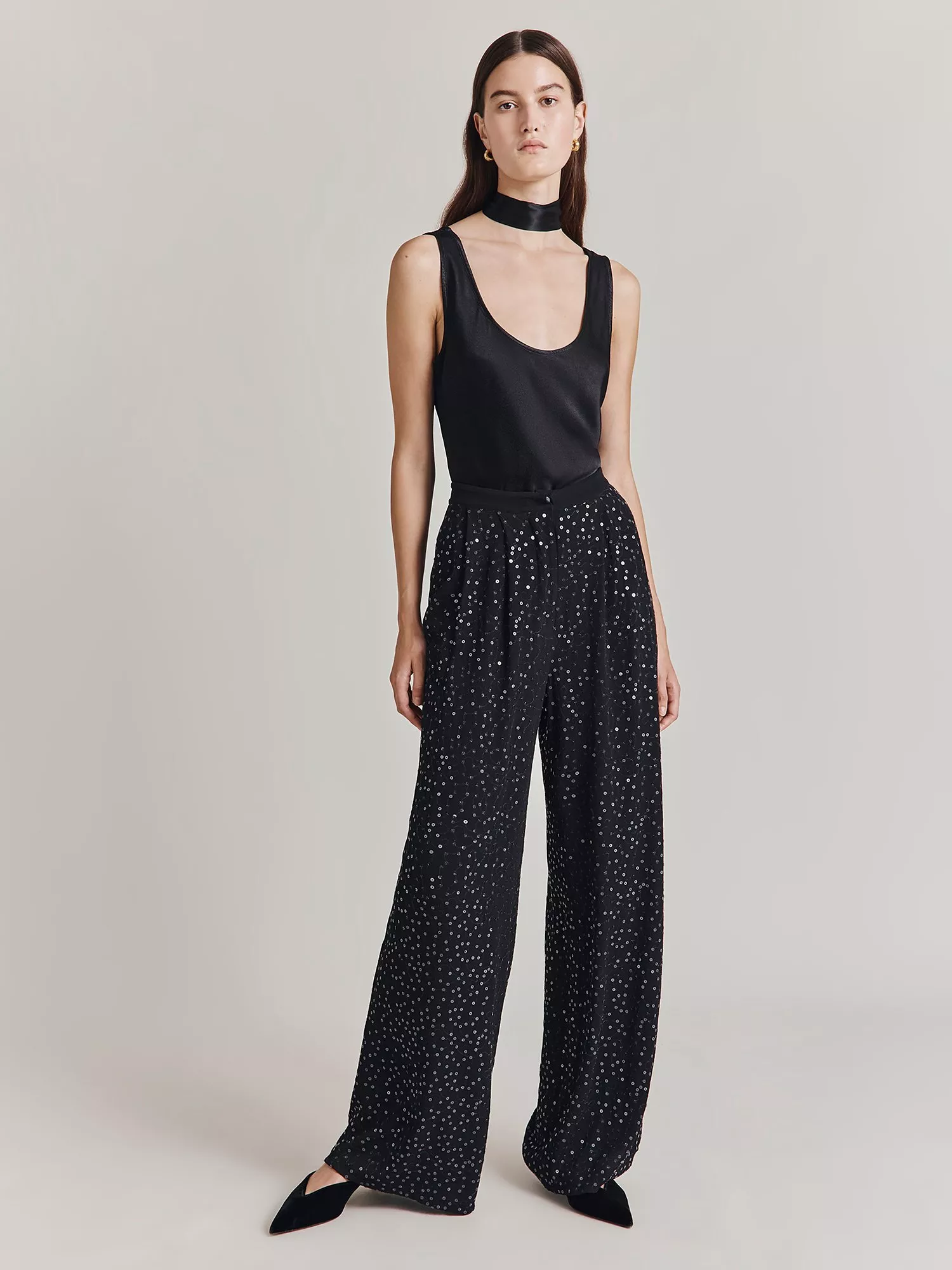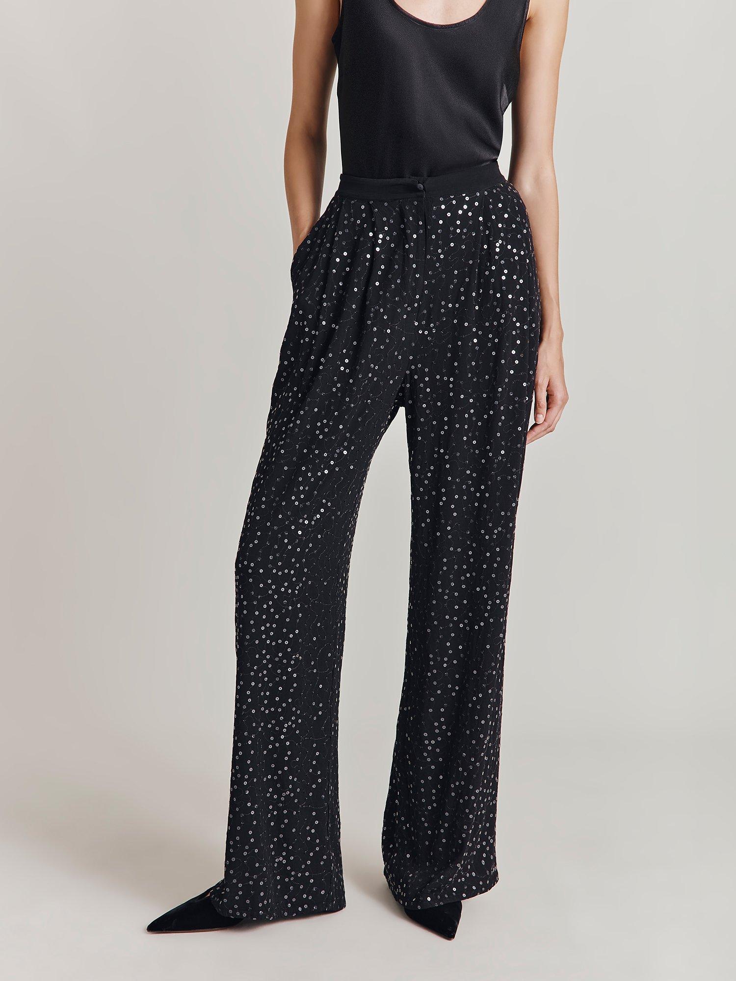 In light, fluid viscose, they are intricately embellished for an elevated finish.