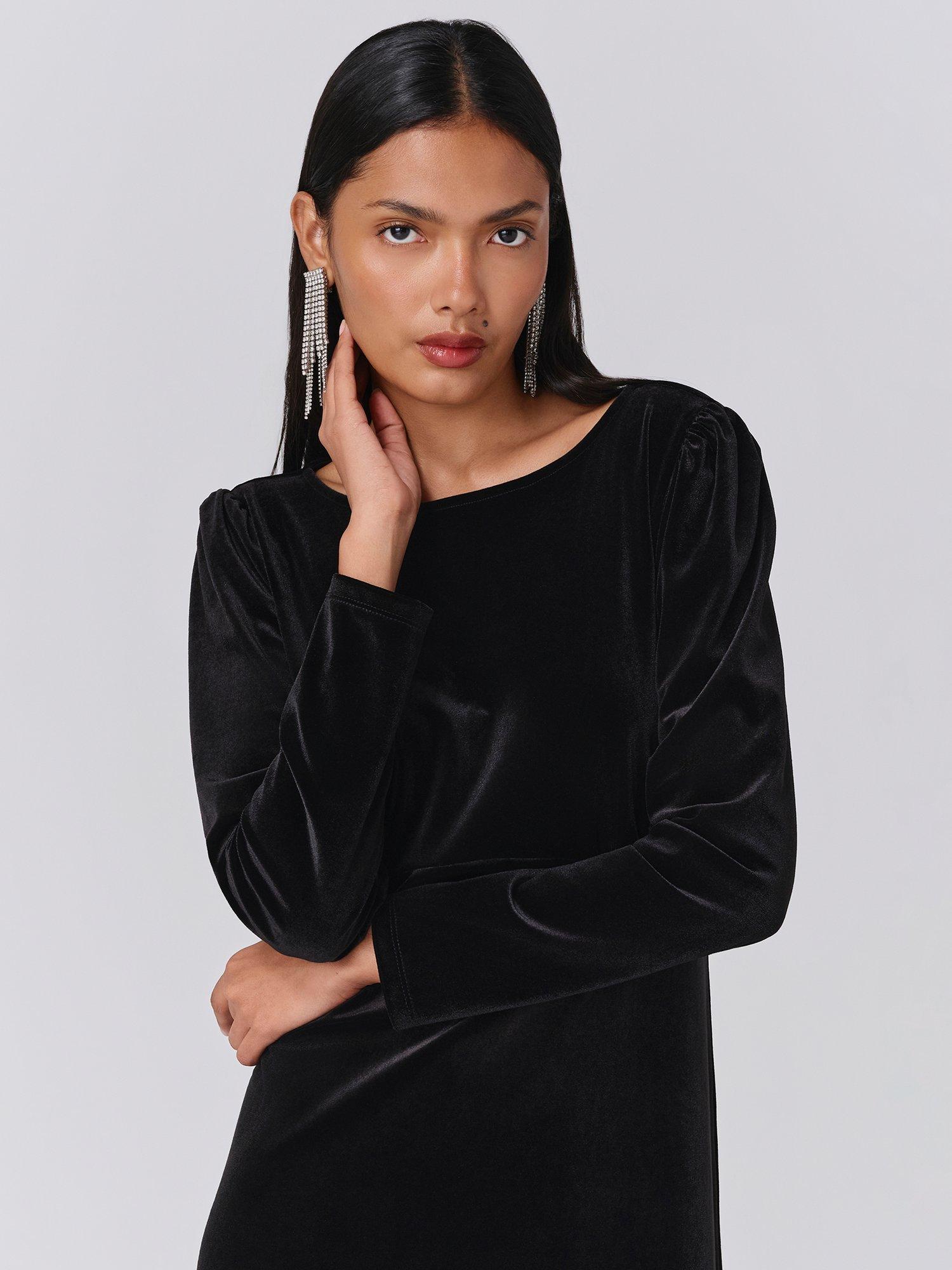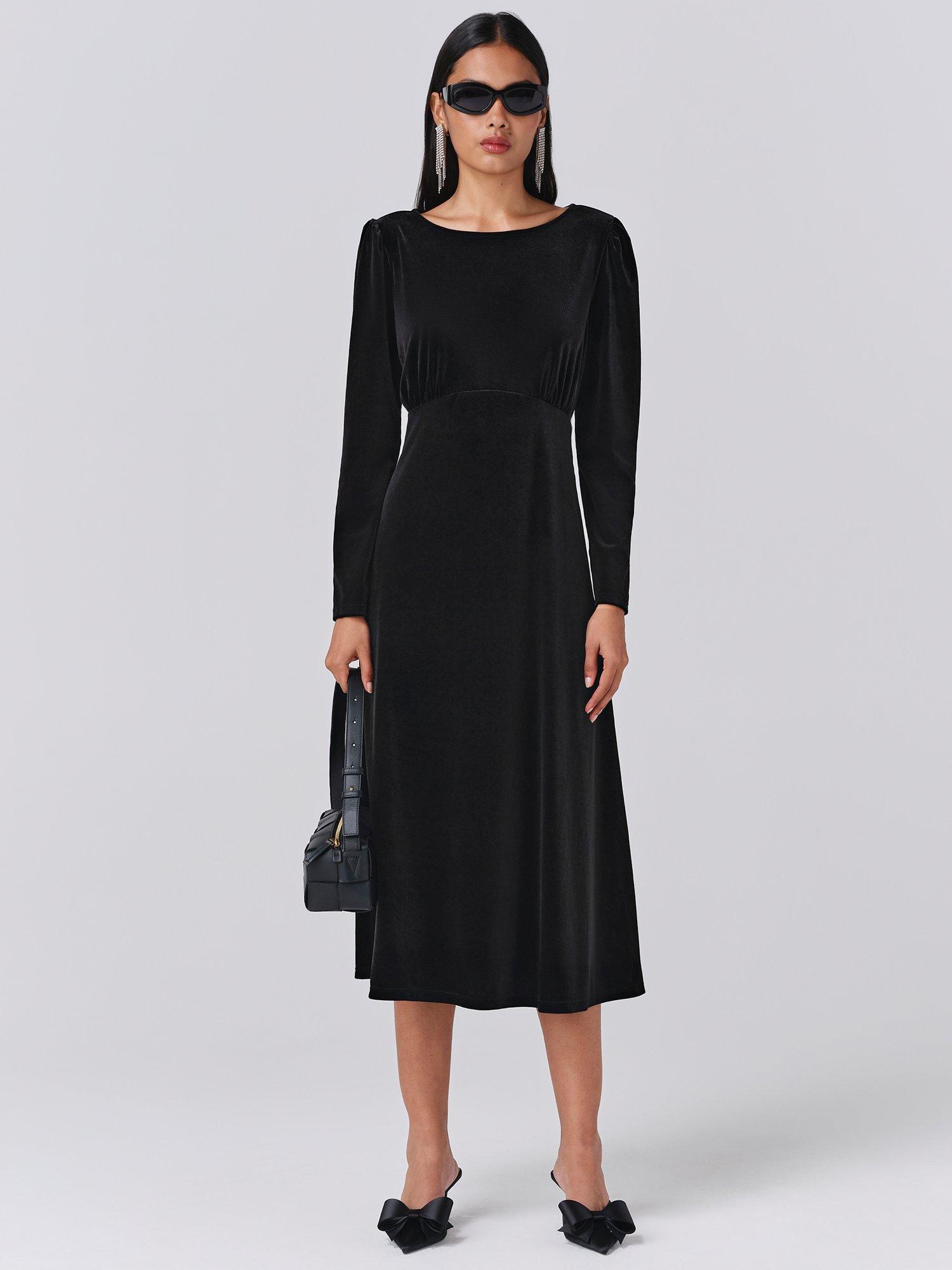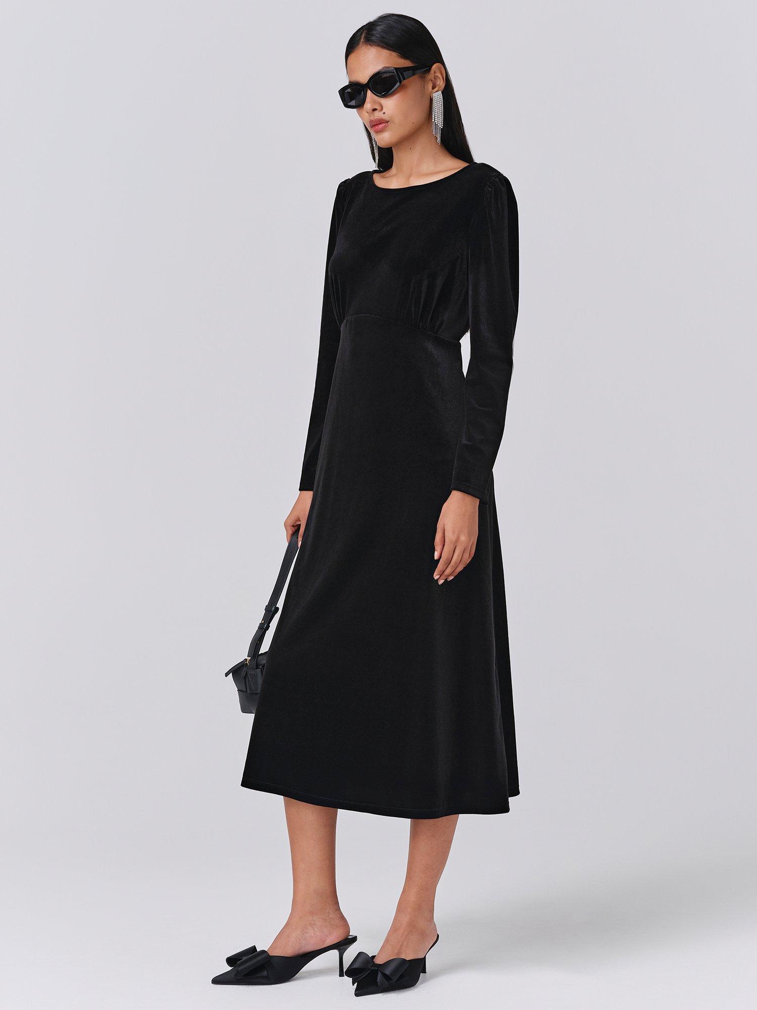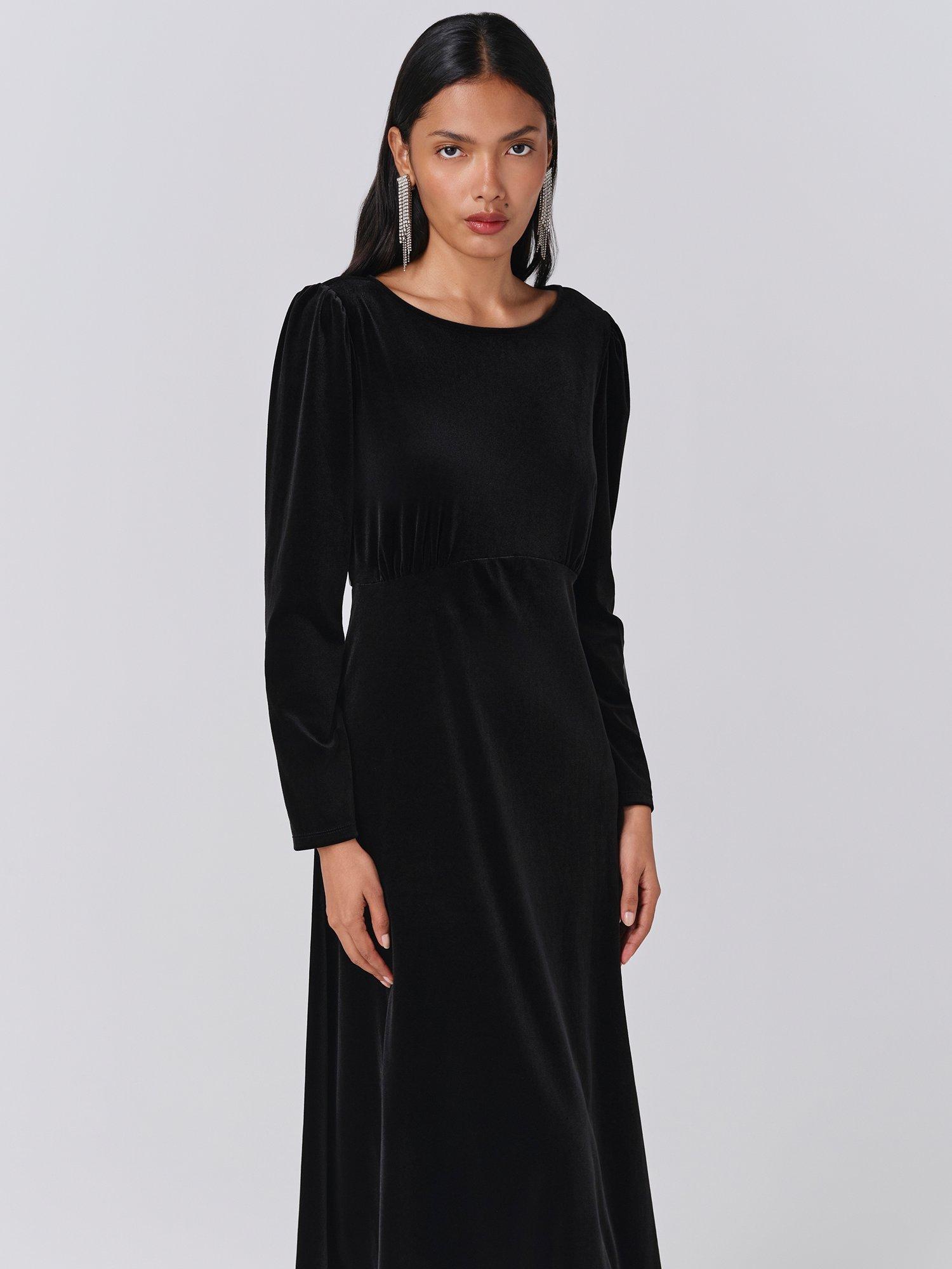 An empire line midi dress in supersoft velvet. The round neck and long sleeves offer comfort while the simple design lets you style it your way.