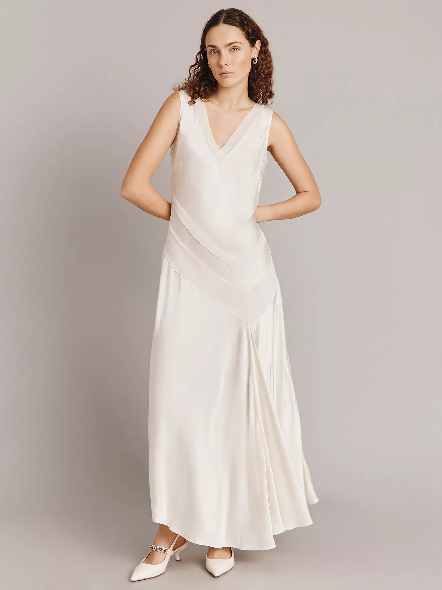 A maxi dress with a twist, Adison stands out from the crowd thanks to her asymmetrical hemline and panel detailing. Cut from soft satin fabric, Adison features thicker shoulder straps and a deep v-neckline that has a georgette trim. Wear with strappy heels and your favourite clutch bag.