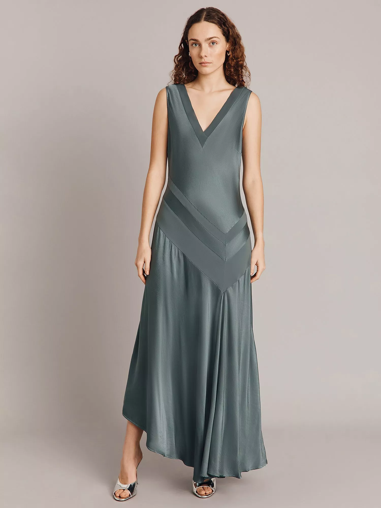 A maxi dress with a twist, Adison stands out from the crowd thanks to her asymmetrical hemline and panel detailing. Cut from soft satin fabric, Adison features thicker shoulder straps and a deep v-neckline that has a georgette trim. Wear with strappy heels and your favourite clutch bag.