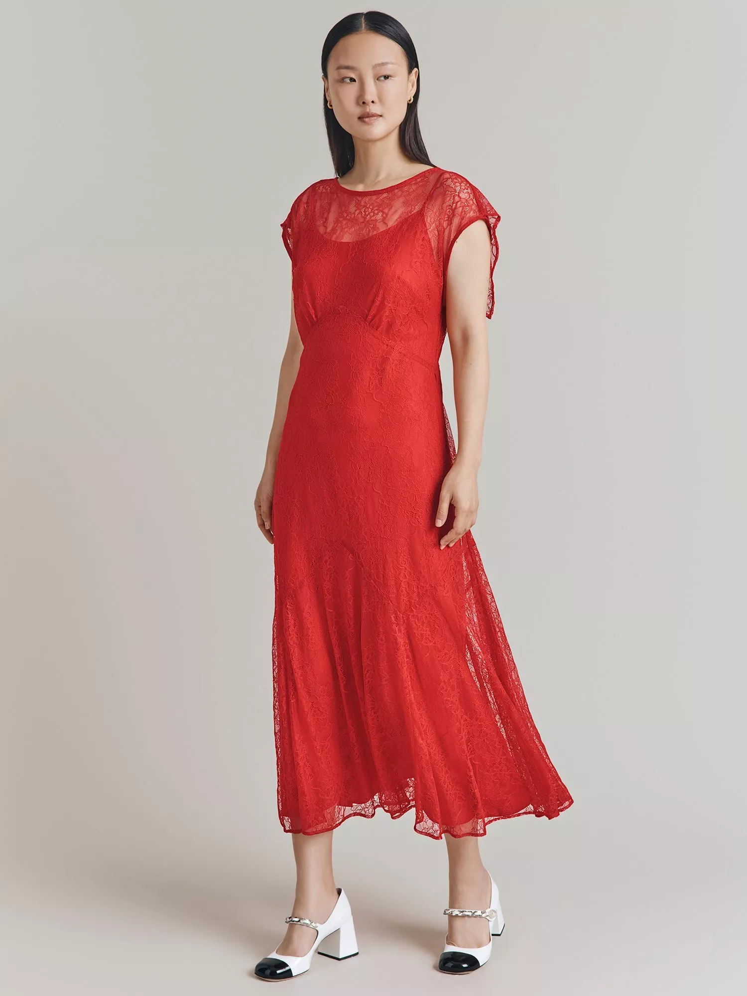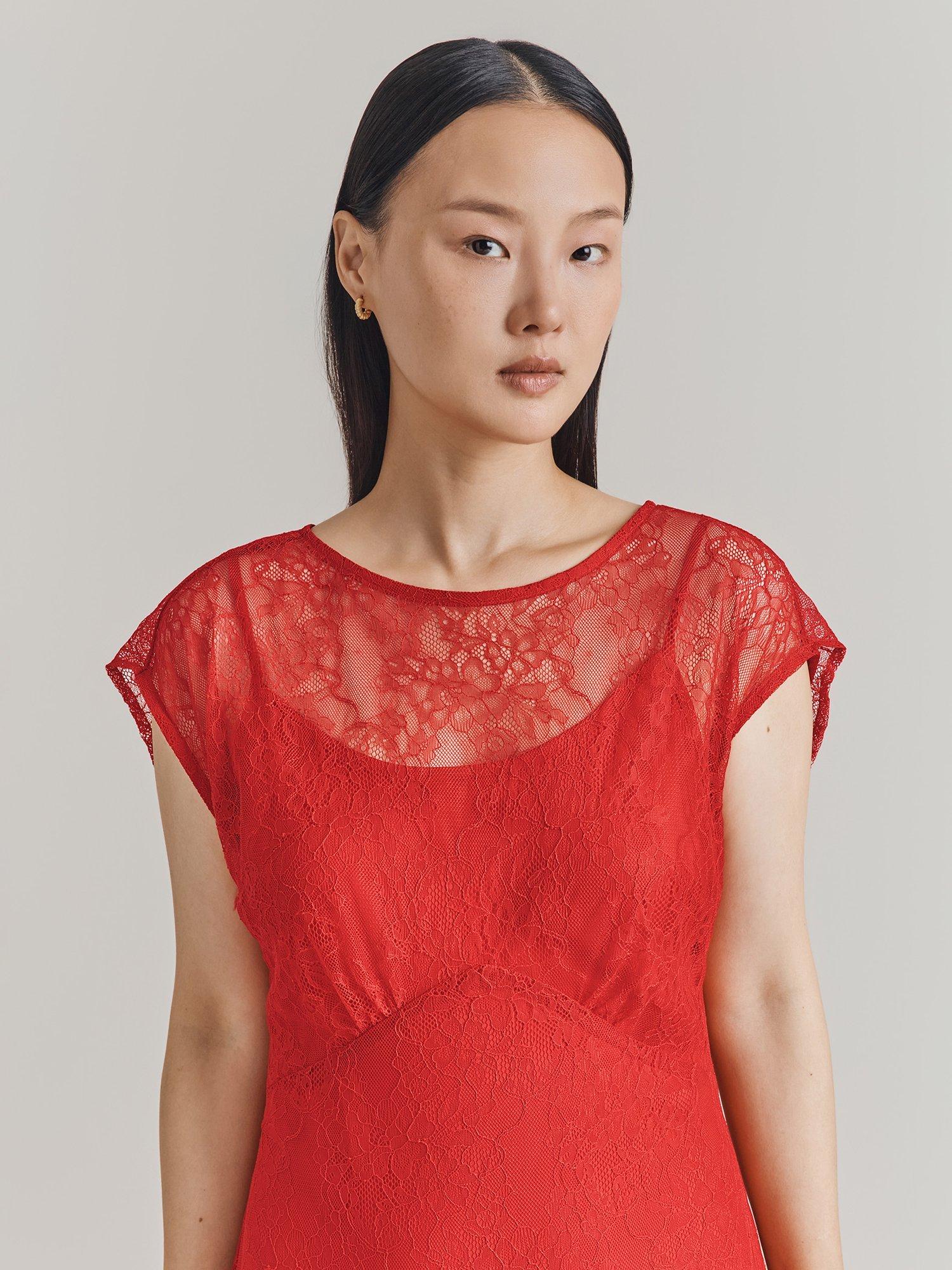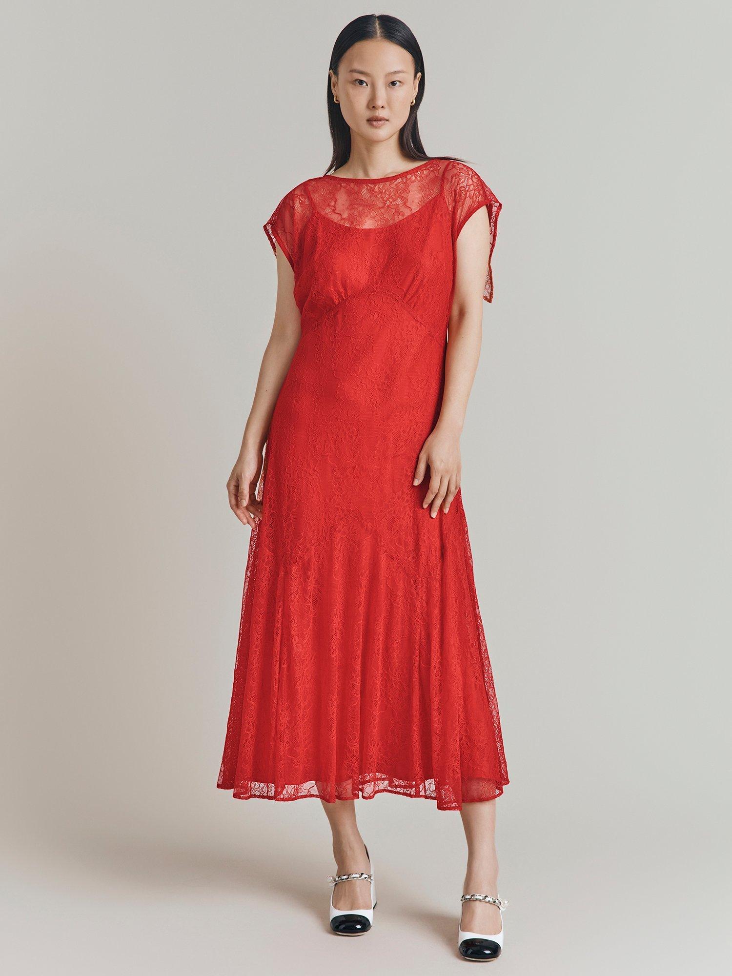 Elegantly cut to an empire line, this midi dress from Ghost is designed with a lace overlay for a timeless feel. In a bright red hue, it's a stunning occasion choice.