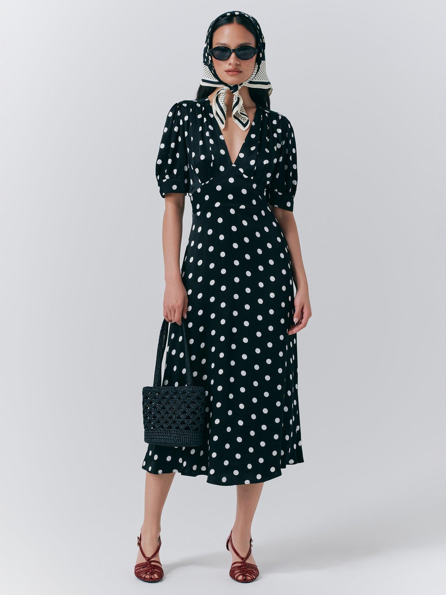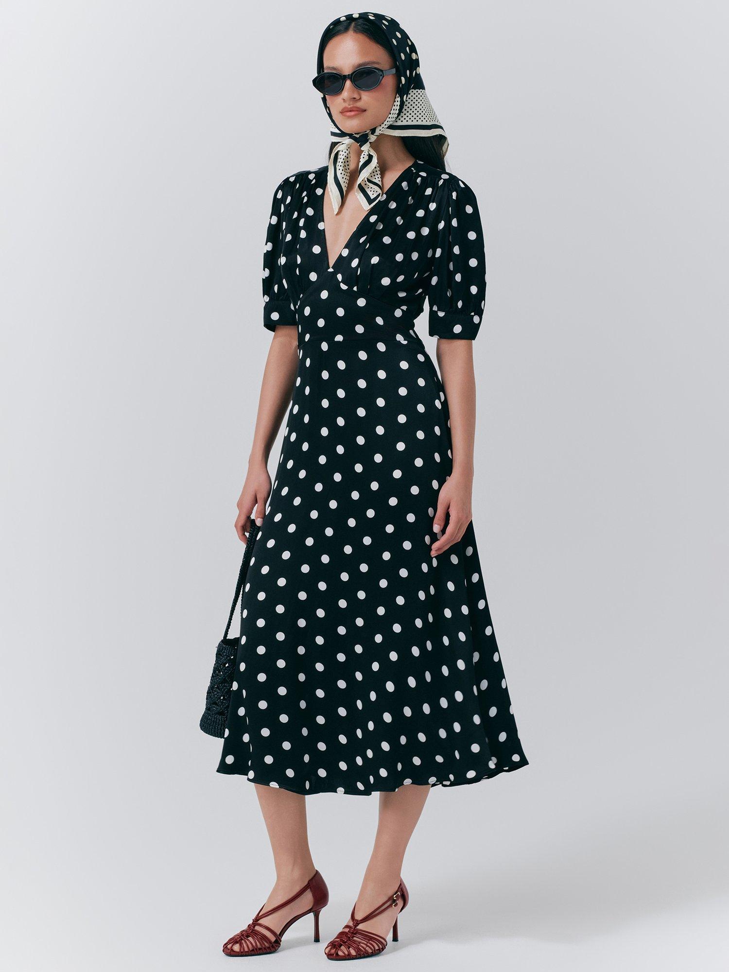 Short puffed sleeves with gathered cuffs, this 50's inspired dress harks back to a vintage era with it's fun and playful silhouette and print.