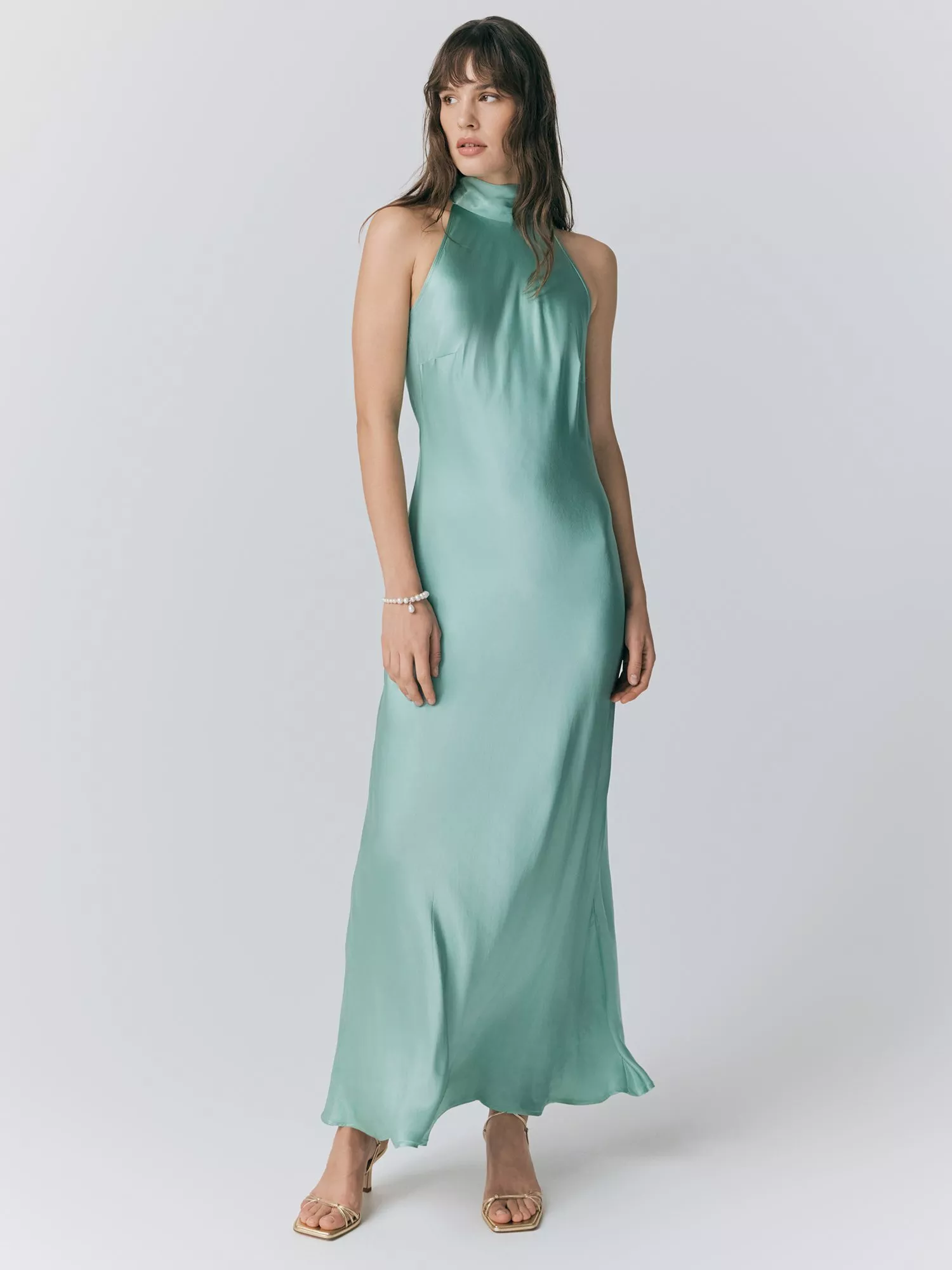 GhostAmaia Halterneck Satin Midi Dress