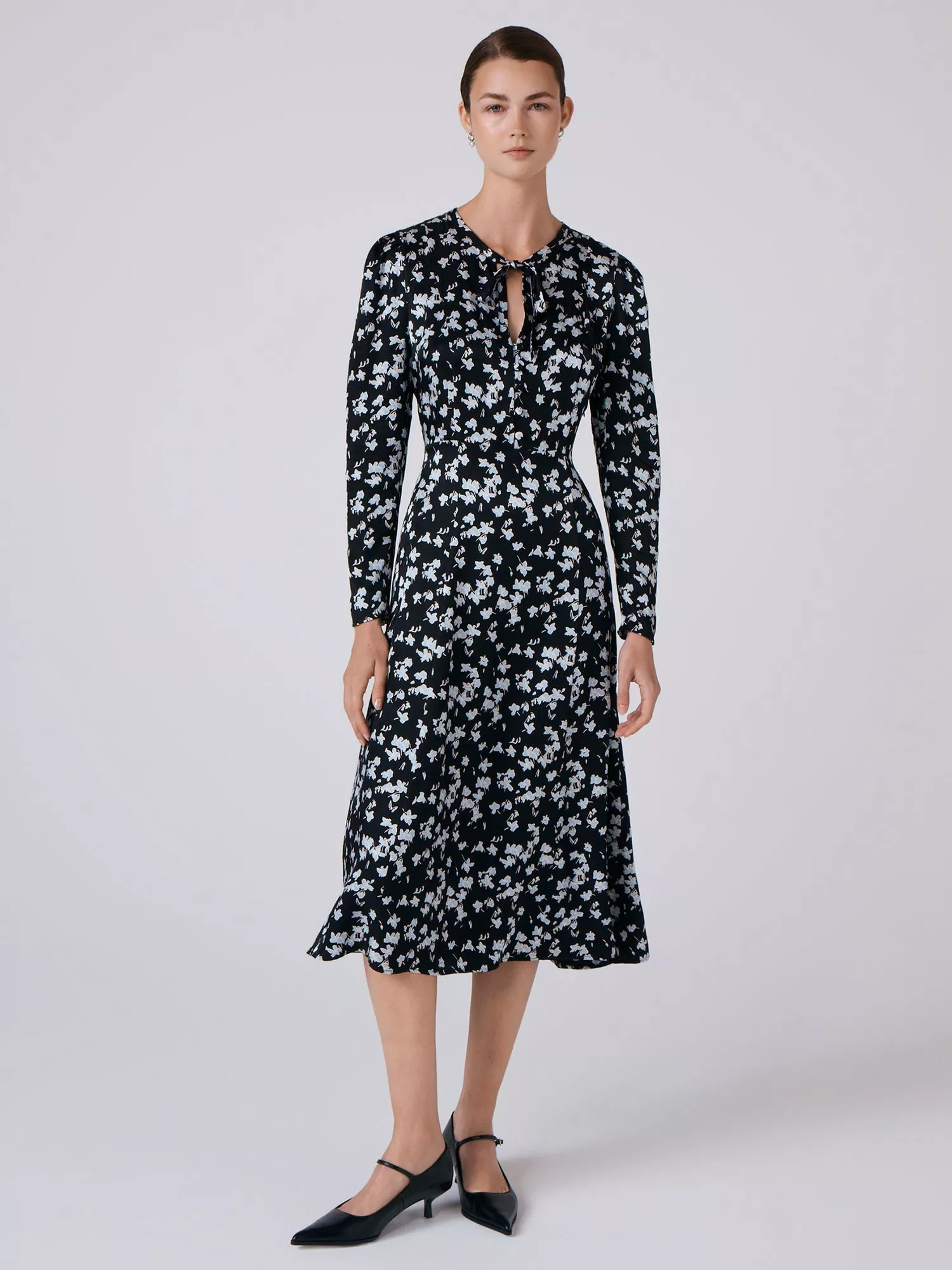 Take on your day with this midi dress from Ghost, featuring a playful tie neck and lively floral pattern. The A-line shape and long sleeves let you move with ease, perfect for when you want to feel both comfortable and confident.