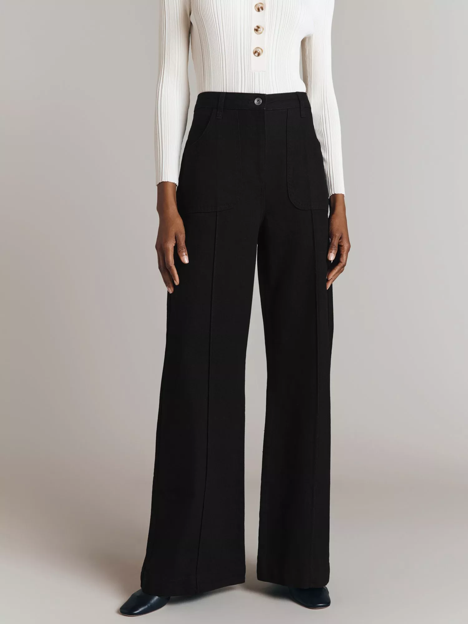 Falling to a flared, wide-leg fit, these high-waisted jeans by Ghost reinvent the classics with their denim composition and fall to a regular length. Plain for ultimate versatility, slip on with whatever takes your fancy.