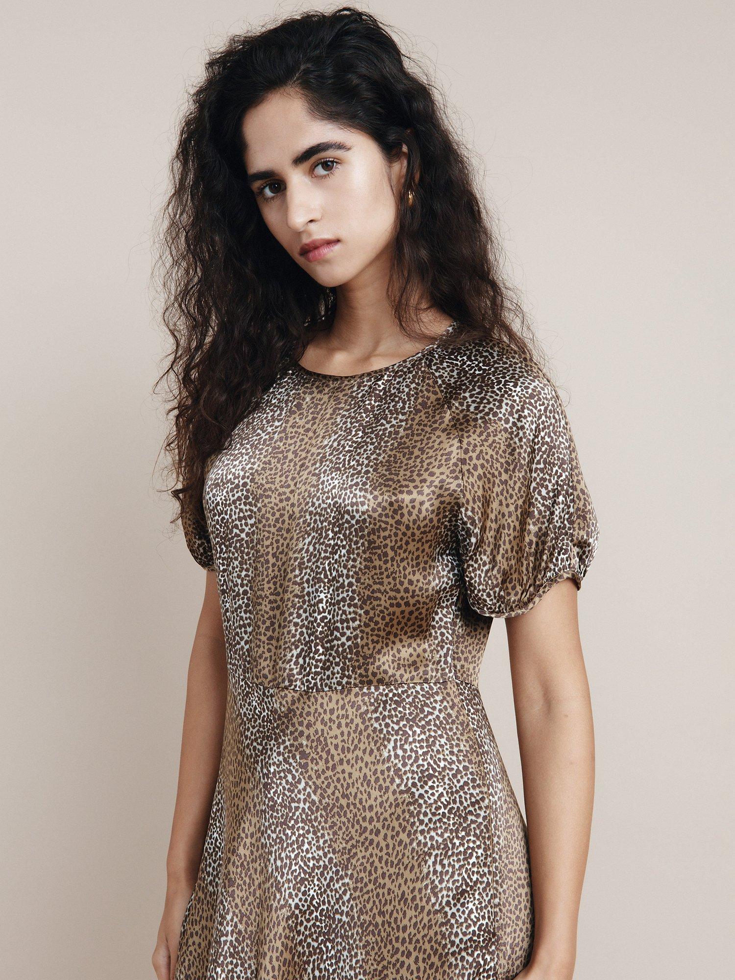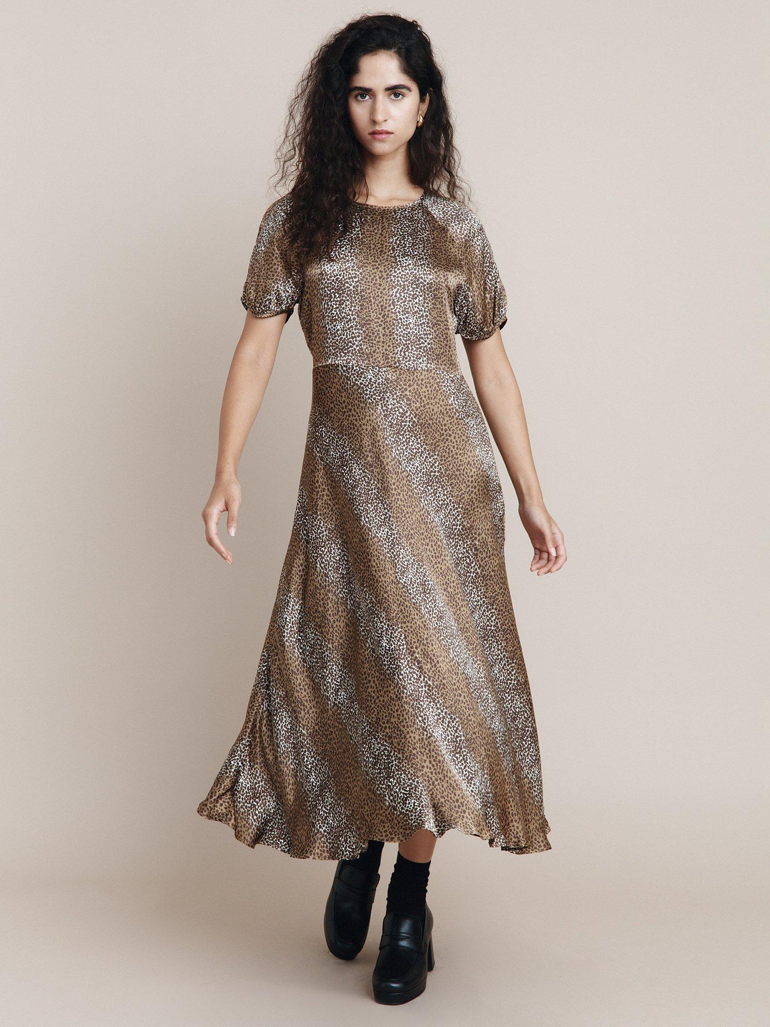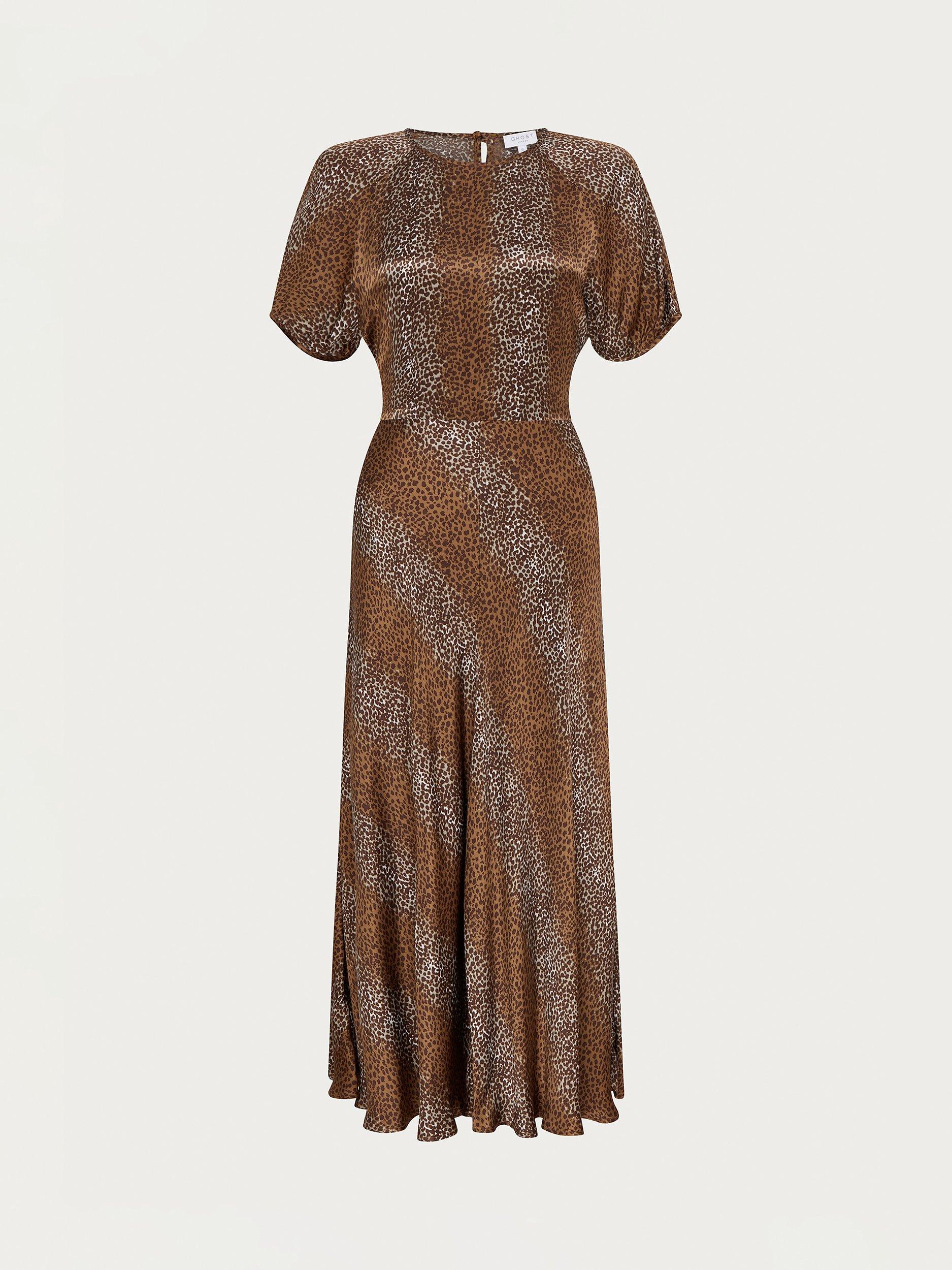 Easy to slip on and go in an A line silhouette, this midi dress by Ghost is decorated with a wild animal print.