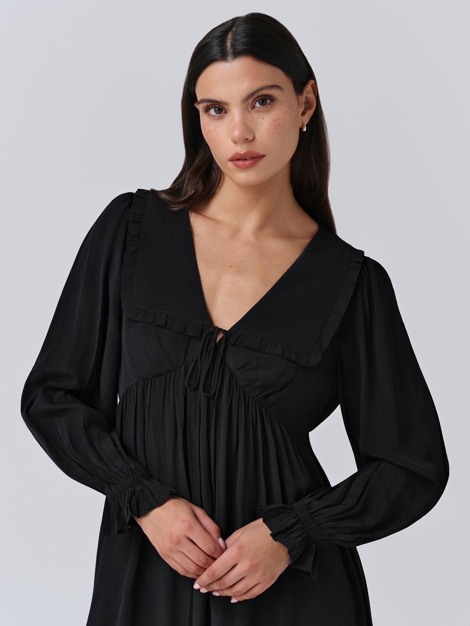 Bianca is a mini dress that’s as bold as it is beautiful. Featuring a statement collar, long sleeves with a frilled cuff and a flattering empire line cut, it’s crafted from lightweight crepe fabric to ensure maximum ease of wear, whatever the occasion.