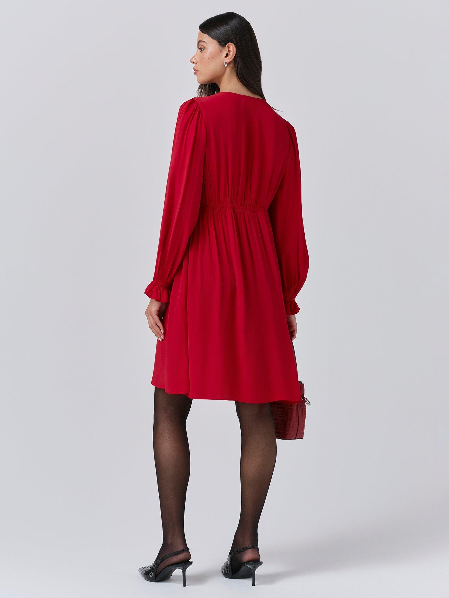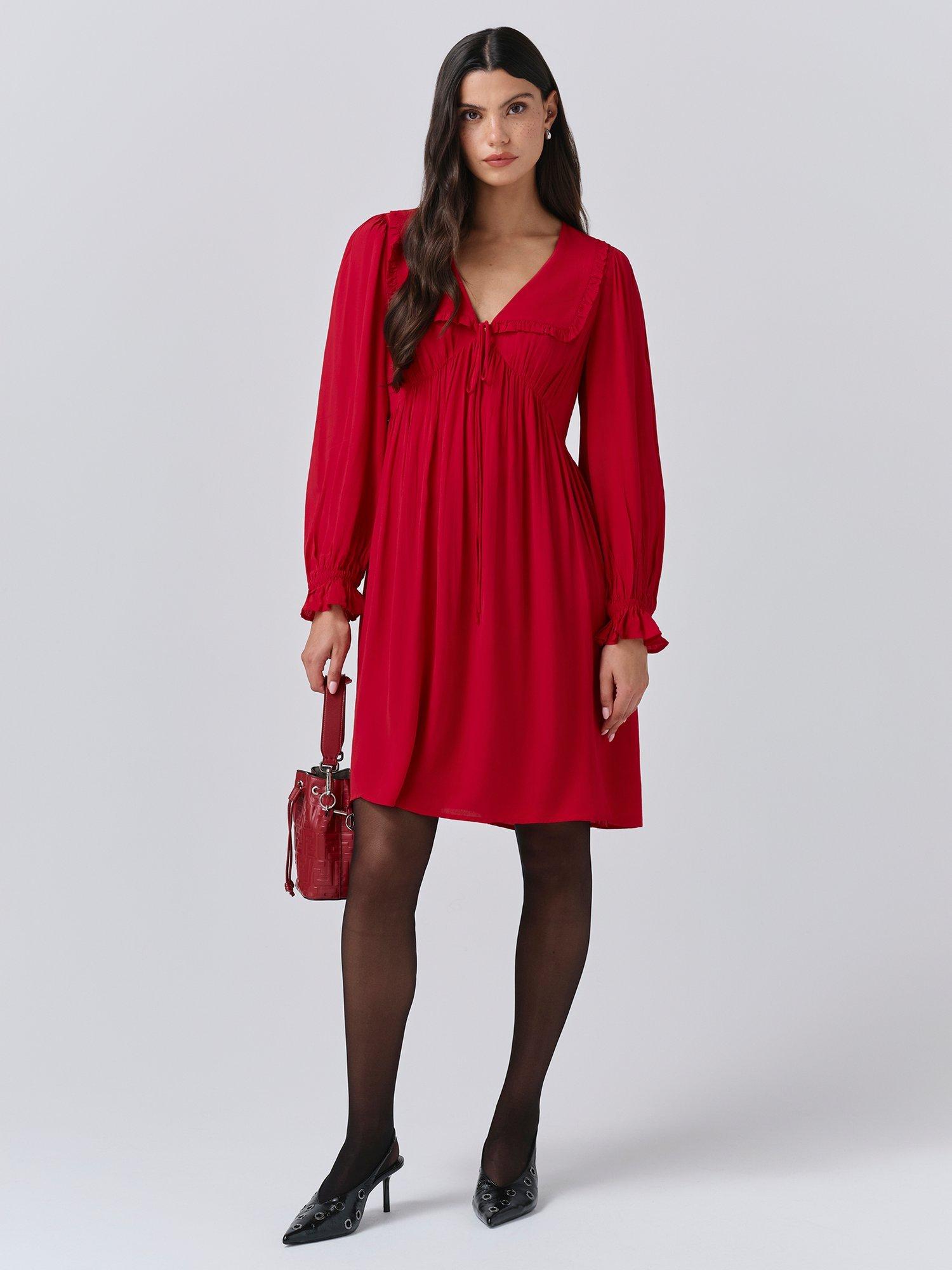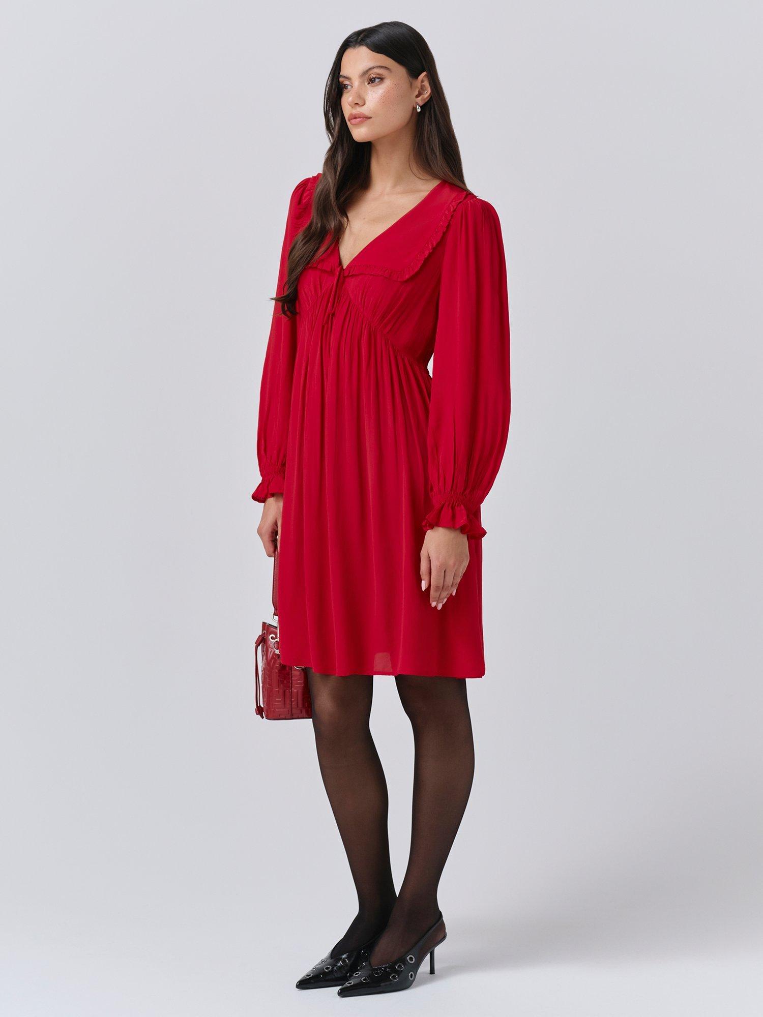 Bianca is a mini dress that’s as bold as it is beautiful. Featuring a statement collar, long sleeves with a frilled cuff and a flattering empire line cut, it’s crafted from lightweight crepe fabric to ensure maximum ease of wear, whatever the occasion.