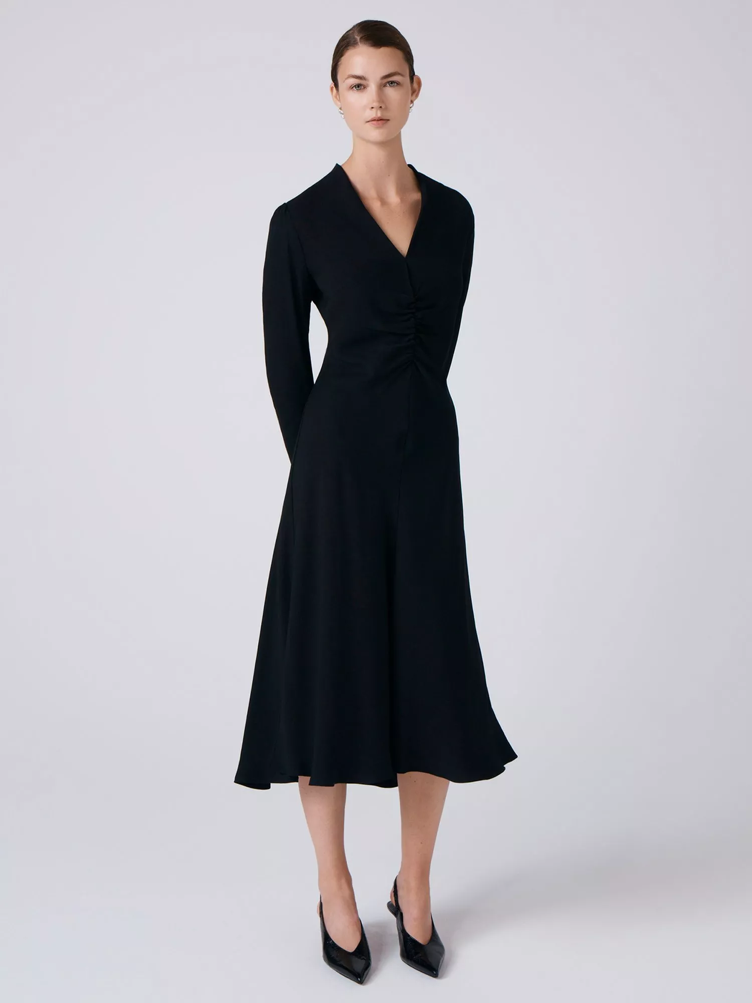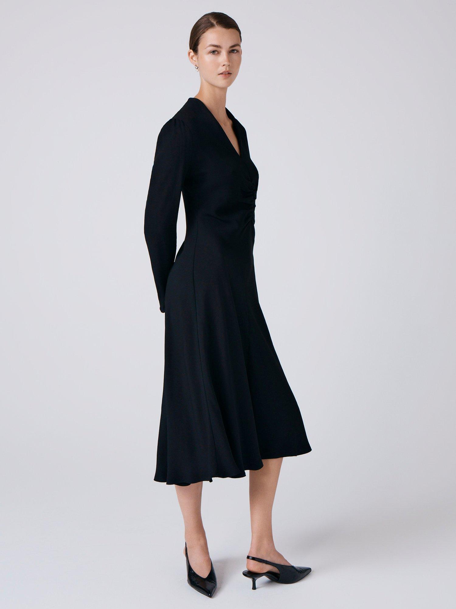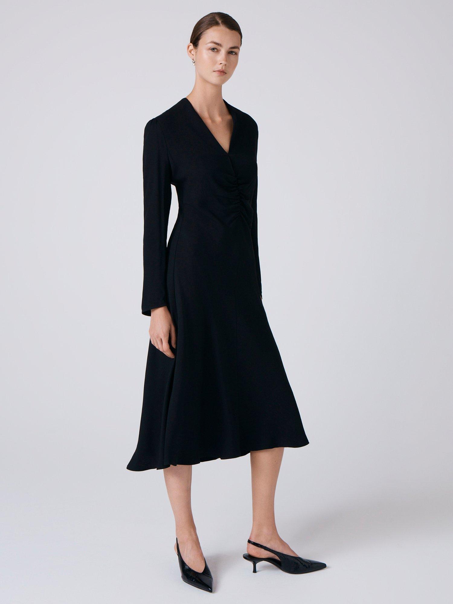 A midi fit and flare dress from Ghost. Smart details and soft viscose deliver all-day comfort, while the V-neck and long sleeves keep you looking fresh and ready for anything.
