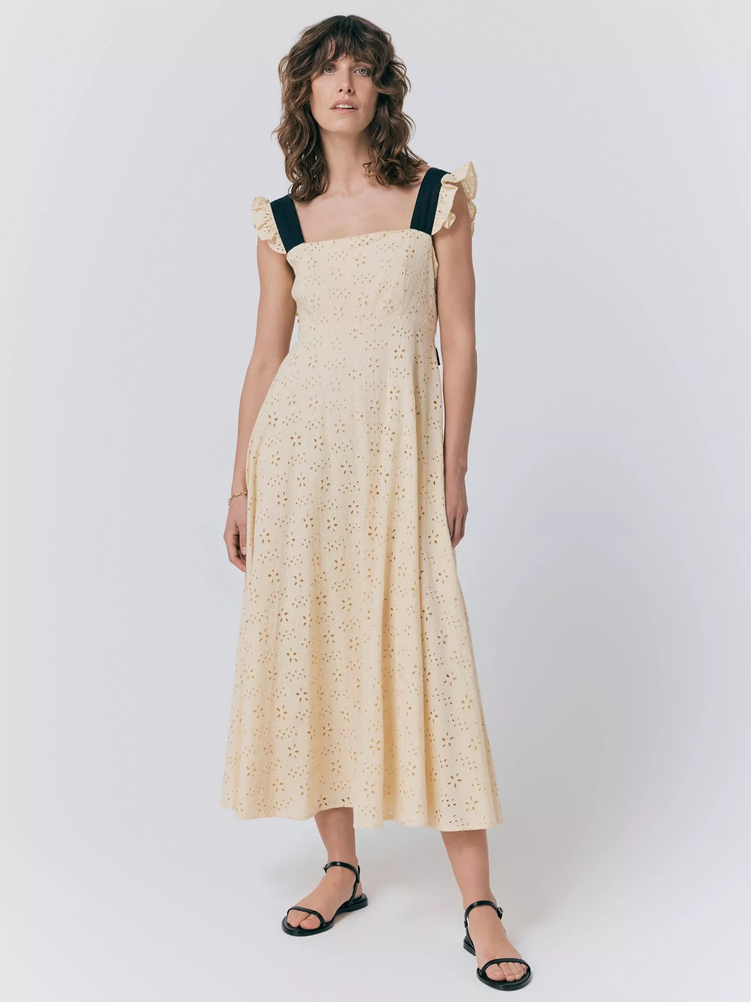 Designed in a fuss-free A-line style, this midi dress from Ghost comes in featherlight cotton. Carved out with a boxy square neck, this style has a textured embroidered effect for an elevated touch.