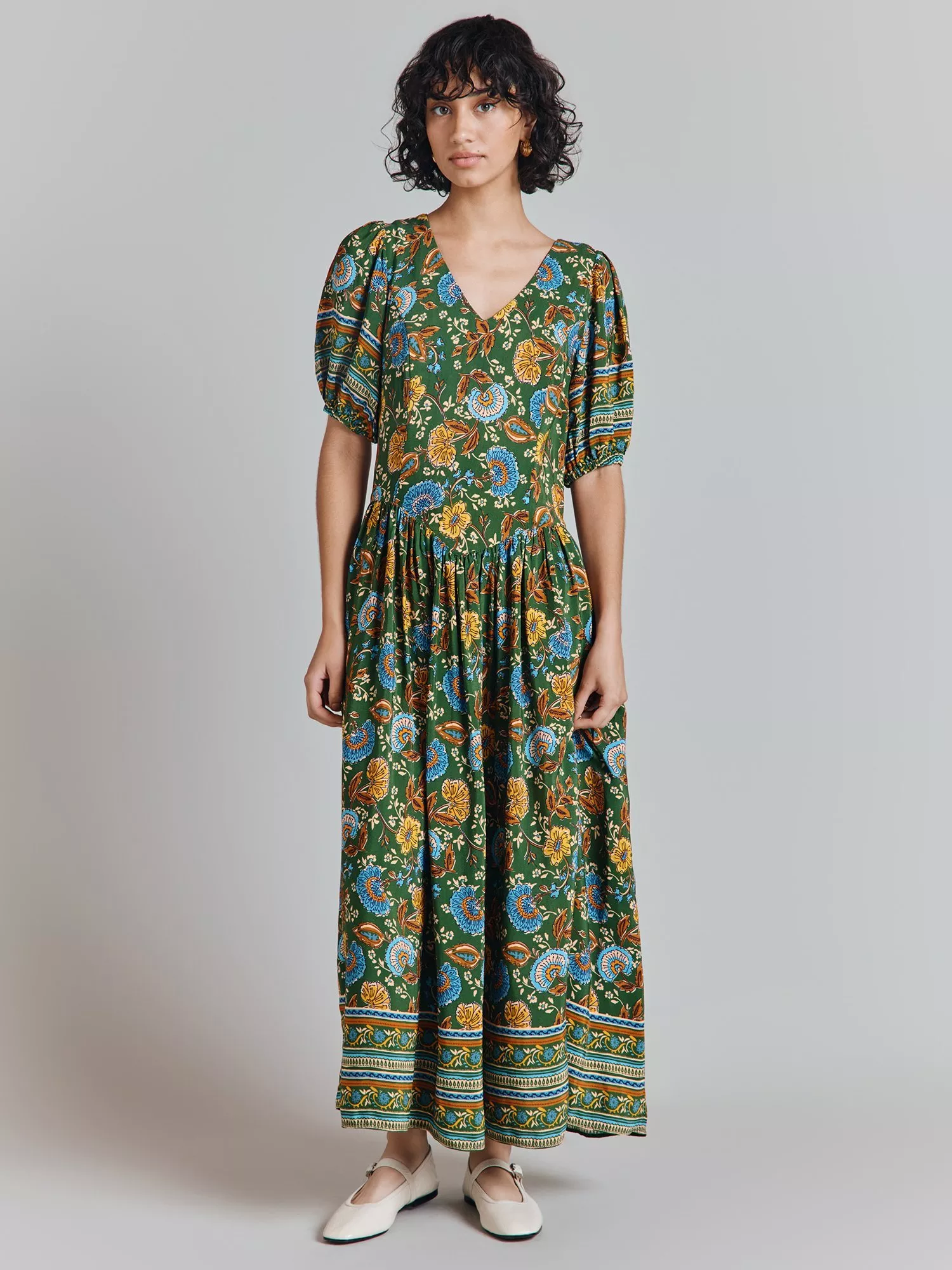We've fallen hard for our Christy dress, the perfect floral number for the new season ahead. Cut from printed crepe, this midi-length style has a soft v neckline that's echoed by the dropped waist. Neat gathering adds volume to the skirt, which is finished with a border print. The short sleeves are elasticated at the opening for gentle volume. Bold and beautiful, it's a statement dress you'll love forever.