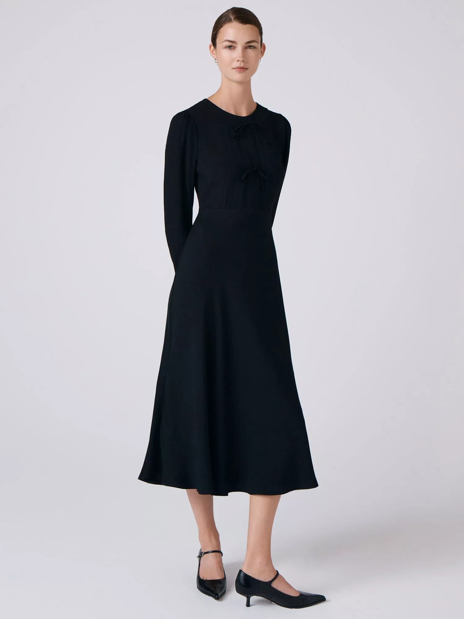 A fit and flare midi dress by Ghost. The round neck and long sleeves create a timeless look while bow embellishments add a twist. Versatile for both day and evening, it keeps you comfortable throughout your plans.