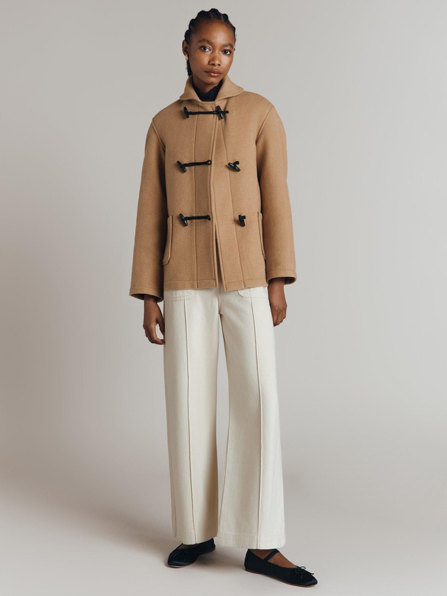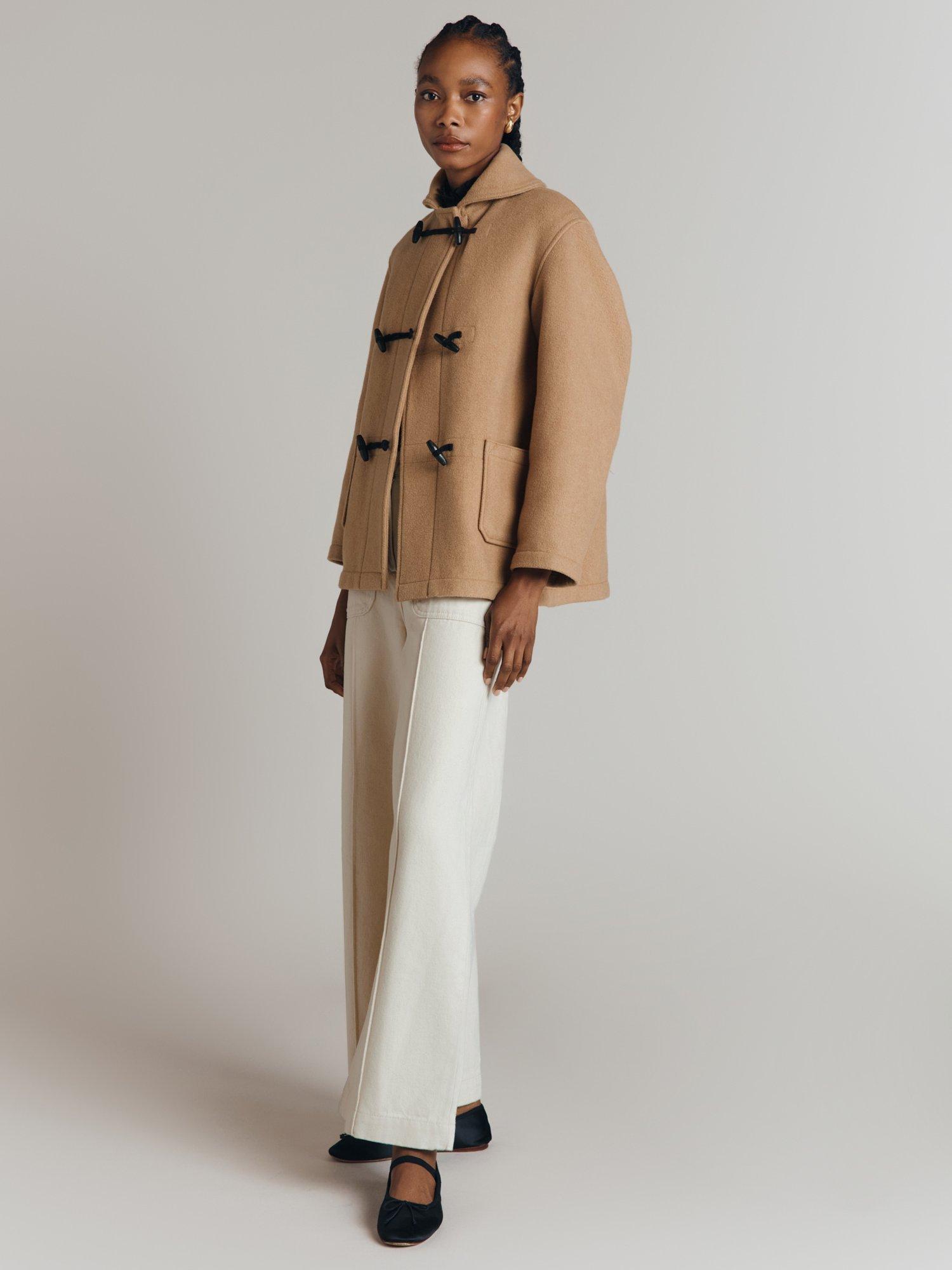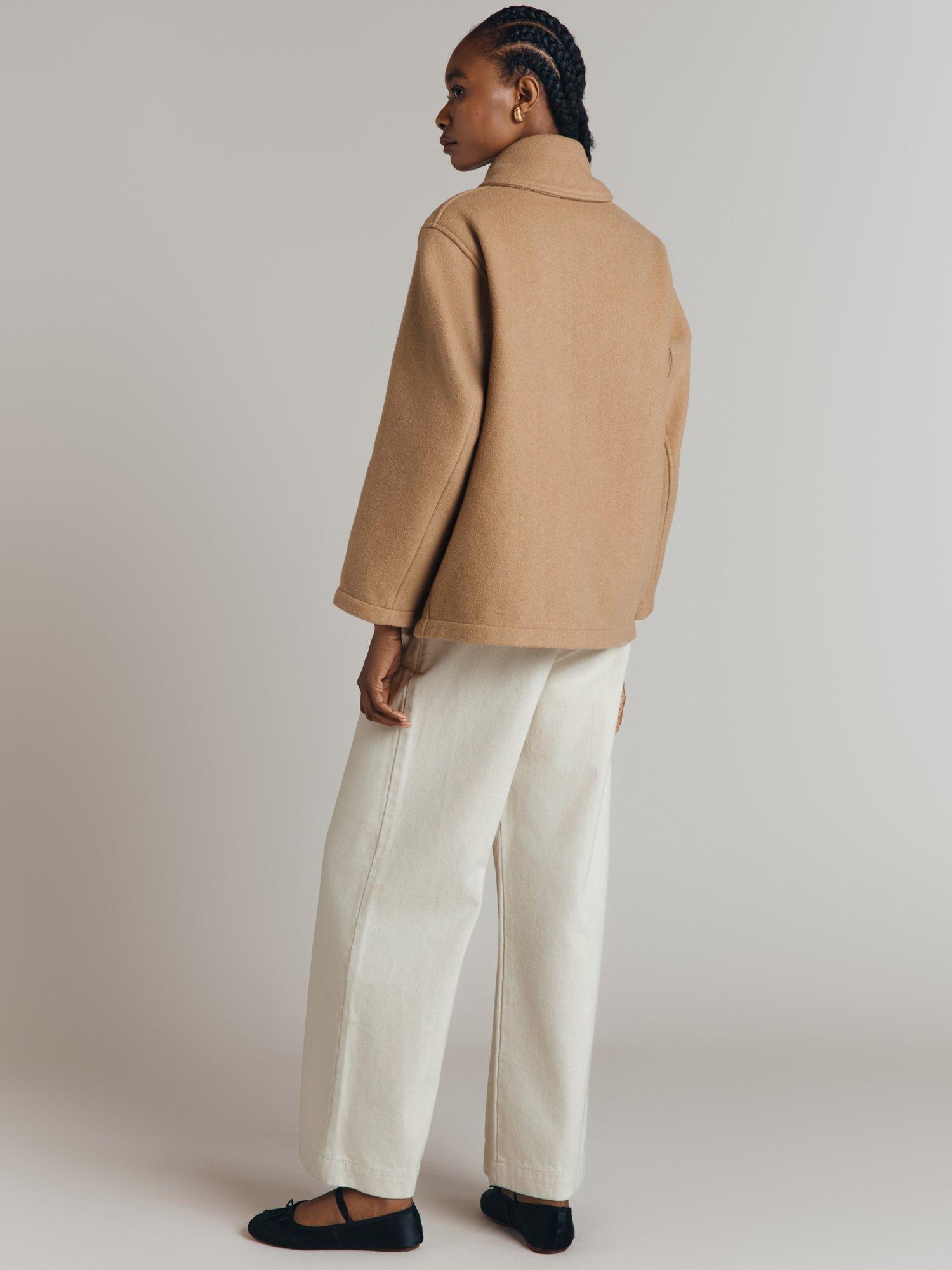 Blended with wool for quality that will last, it comes in a layerable boxy fit.