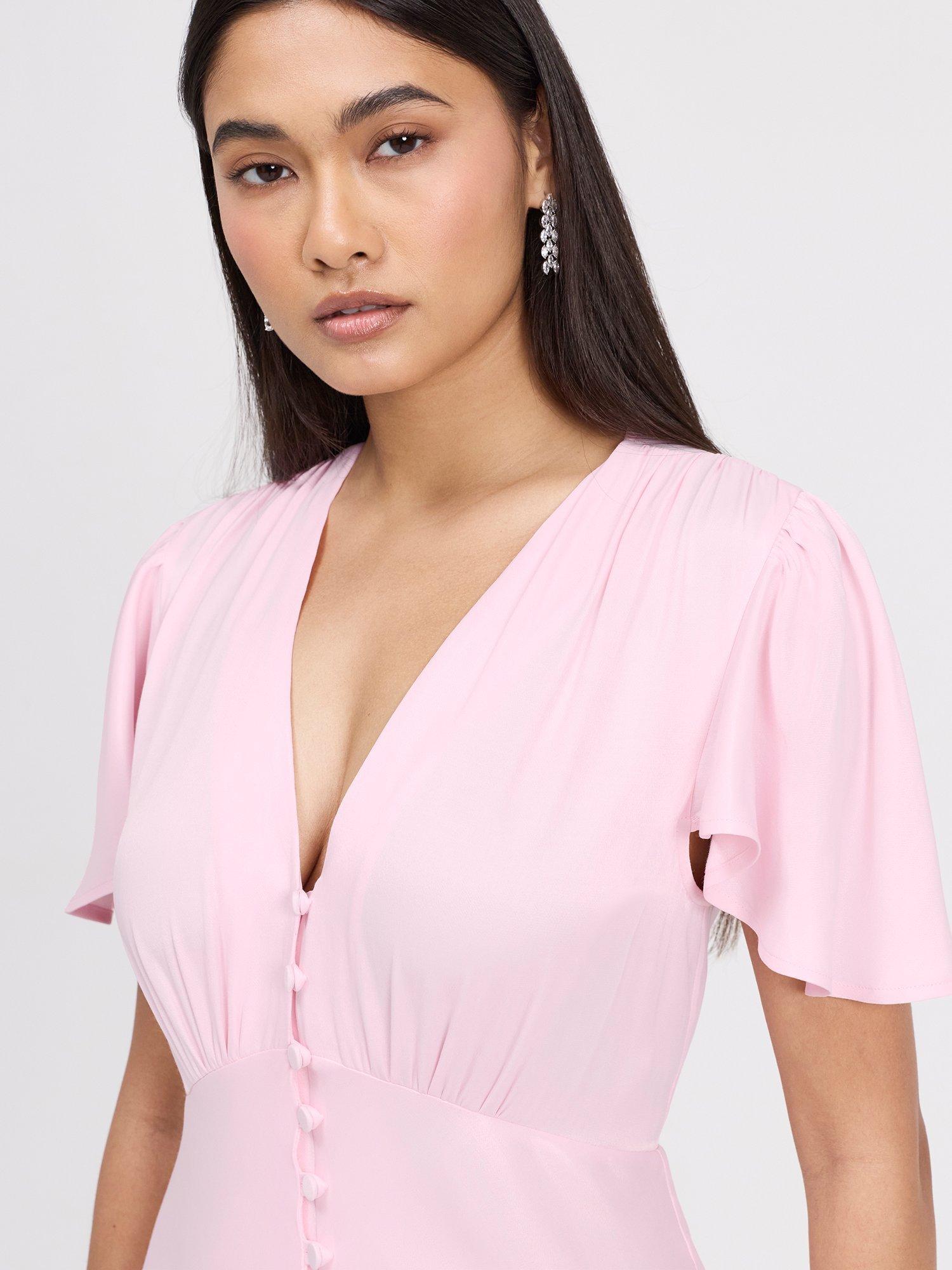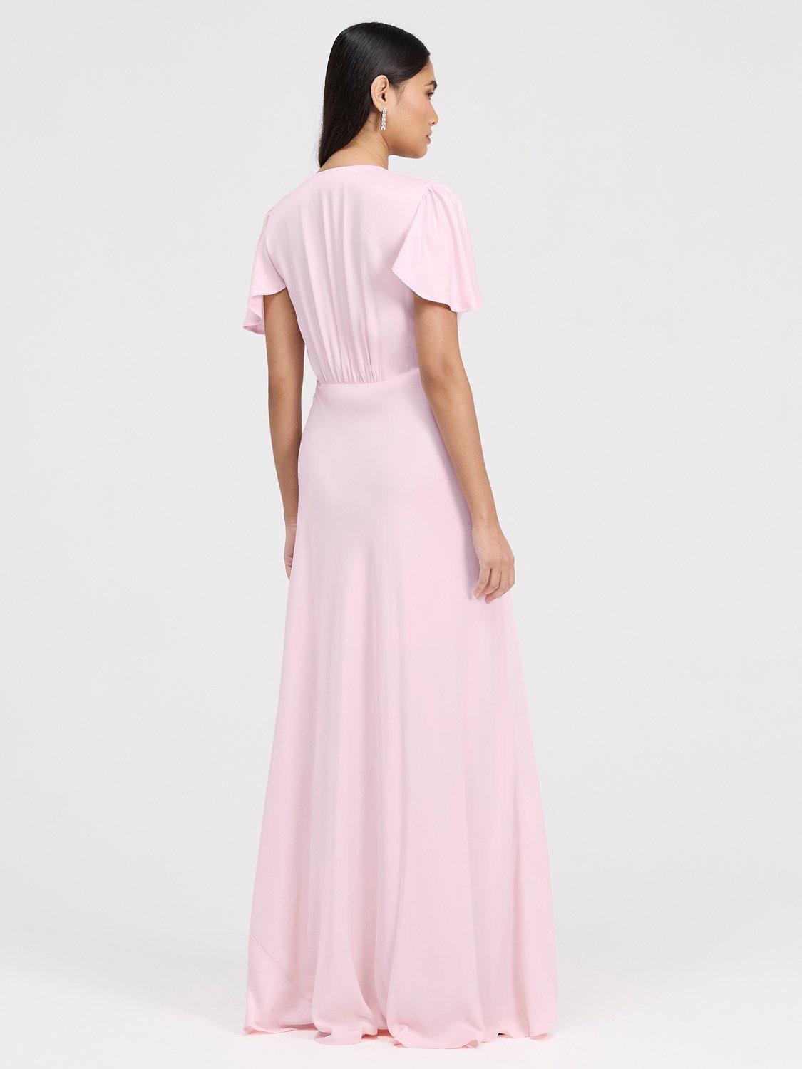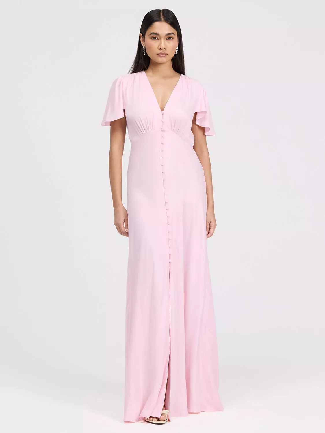 The Delphine button up dress is a satin maxi designed for bridesmaids and special occasions. Featuring a flattering v-neckline, soft angel sleeves, and a bias-cut silhouette. Skims the body elegantly while offering graceful coverage at the shoulders. A button-through front adds subtle detail, and the maxi length ensures timeless sophistication, making Delphine a polished v-neck bridesmaid dress and versatile maxi bridesmaid dress option.