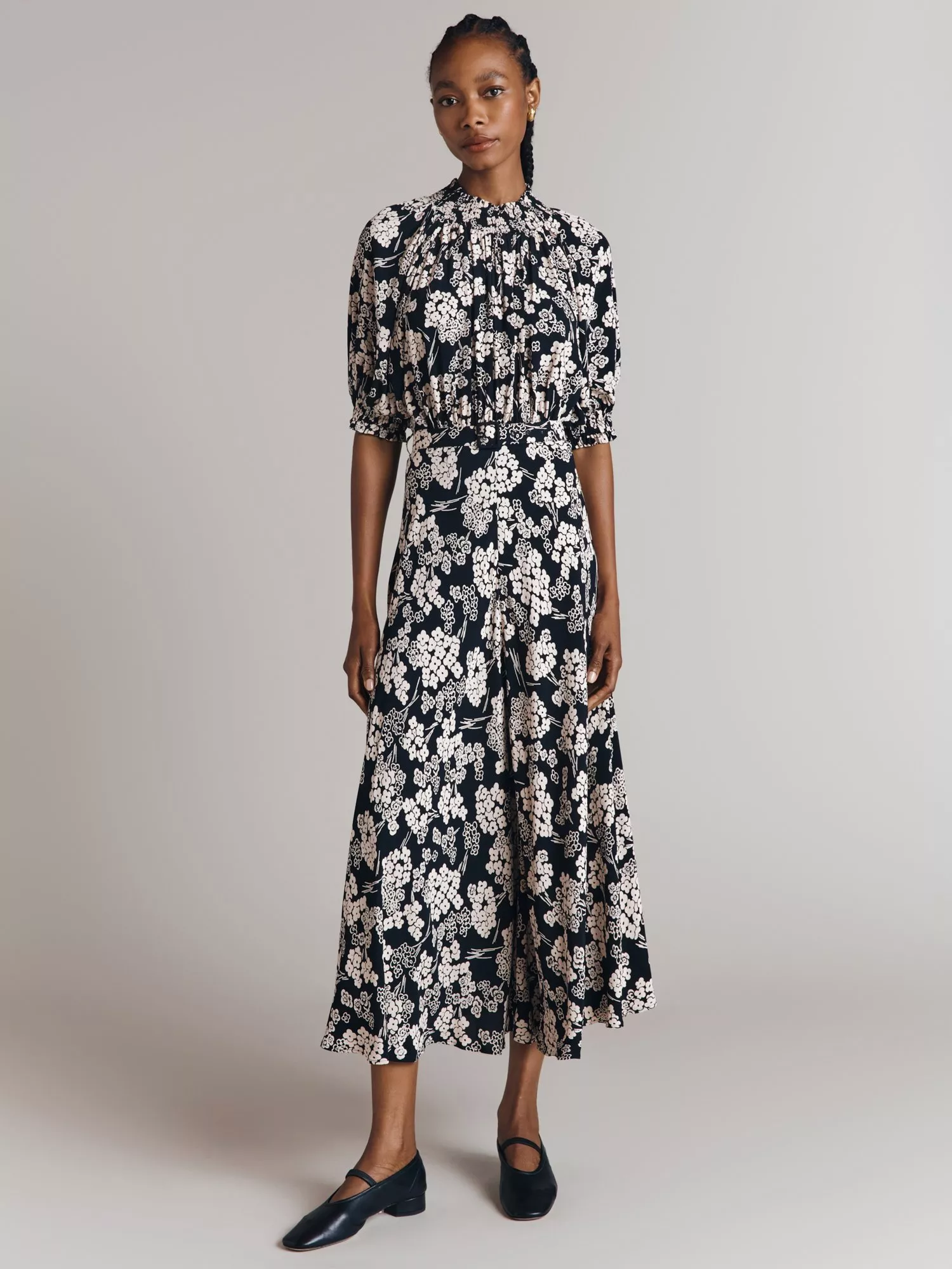 In a flattering fit that accentuates the waist, this mid-length dress from Ghost is dreamt up from whisper-weight viscose. Defined with a conventional round neckline and elbow length sleeves, this style is planted with flourishing florals.