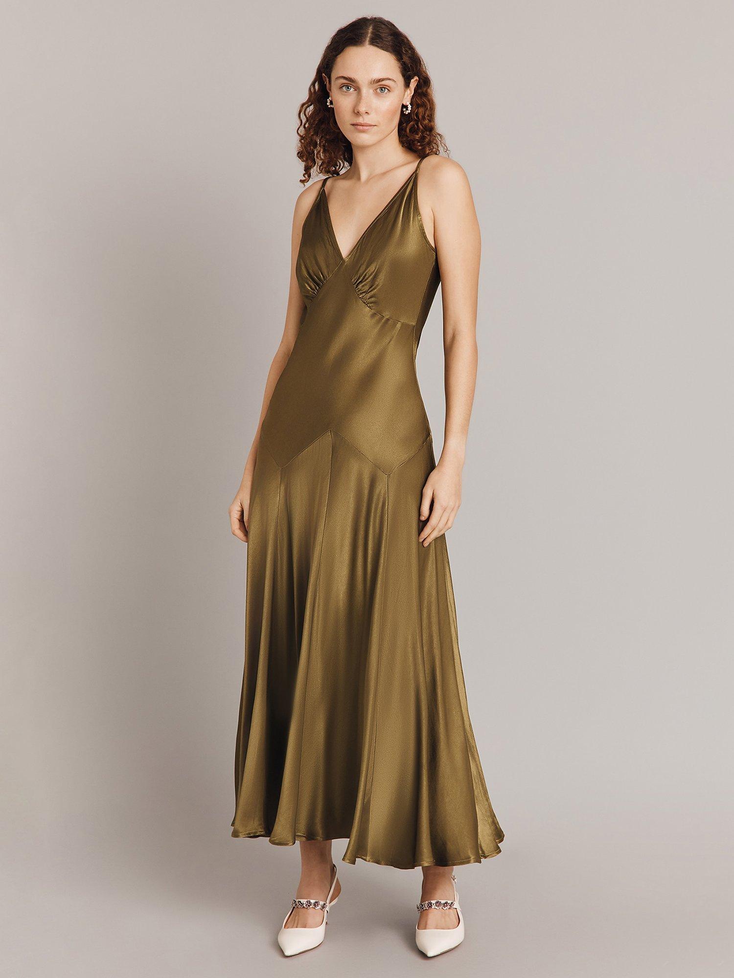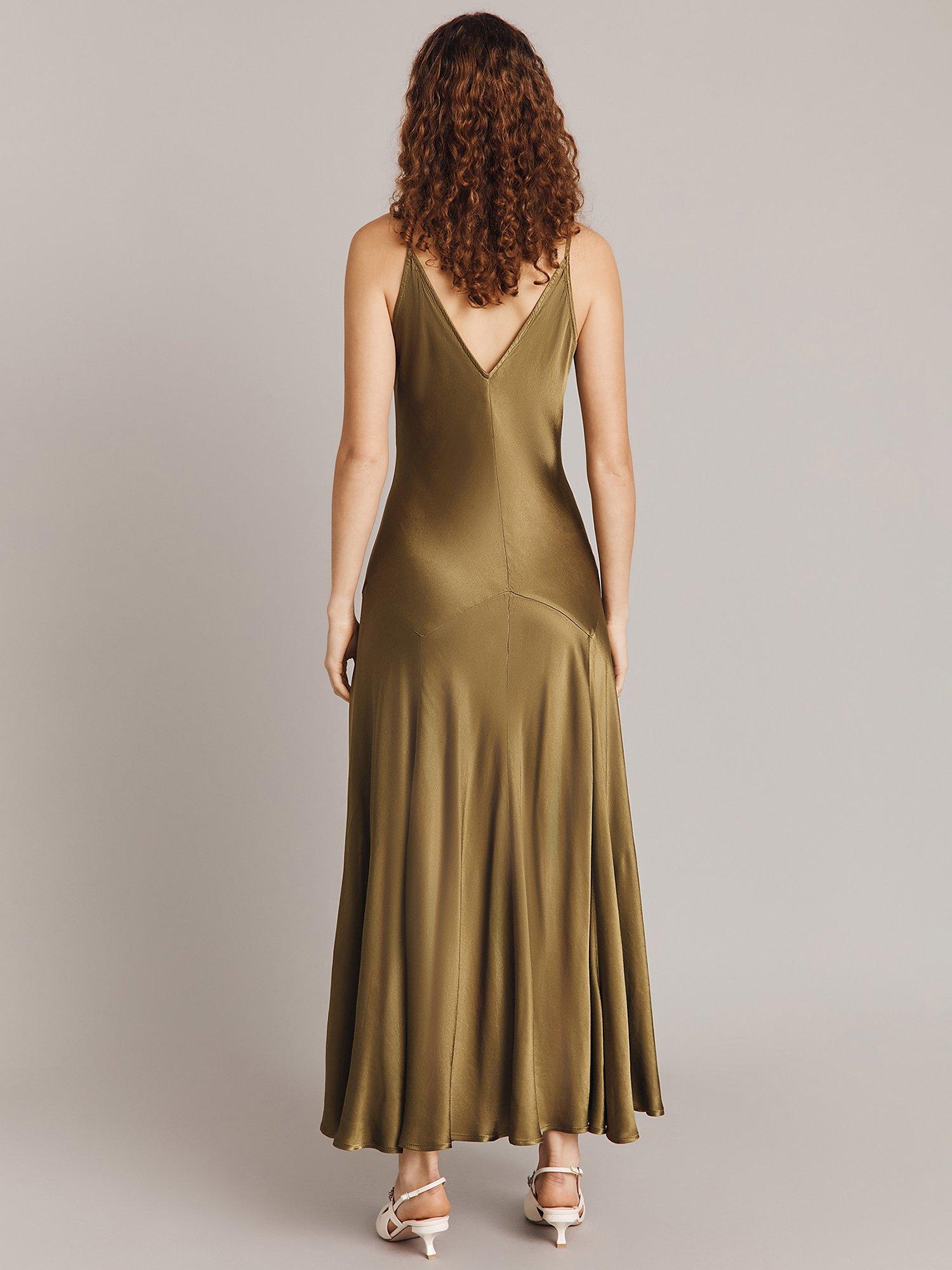 GhostElodie Satin Maxi Slip Dress, Olive, XXS