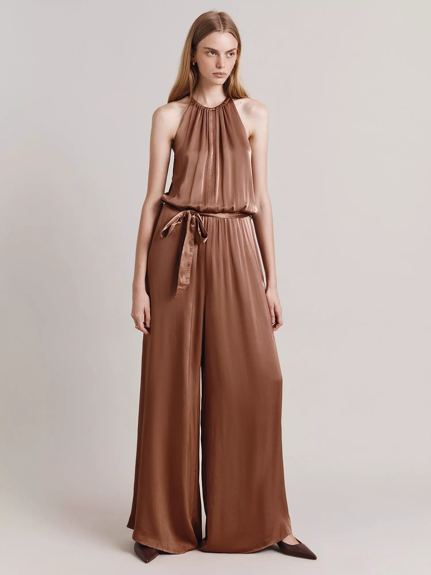 Elsie is a contemporary twist on a bridal jumpsuit, loose fit in the leg it you can cinch in the waist with the satin belt tie. Also featuring a keyhole detail in the front and back and gathered neckline to allow for as much or as little skin shown.
